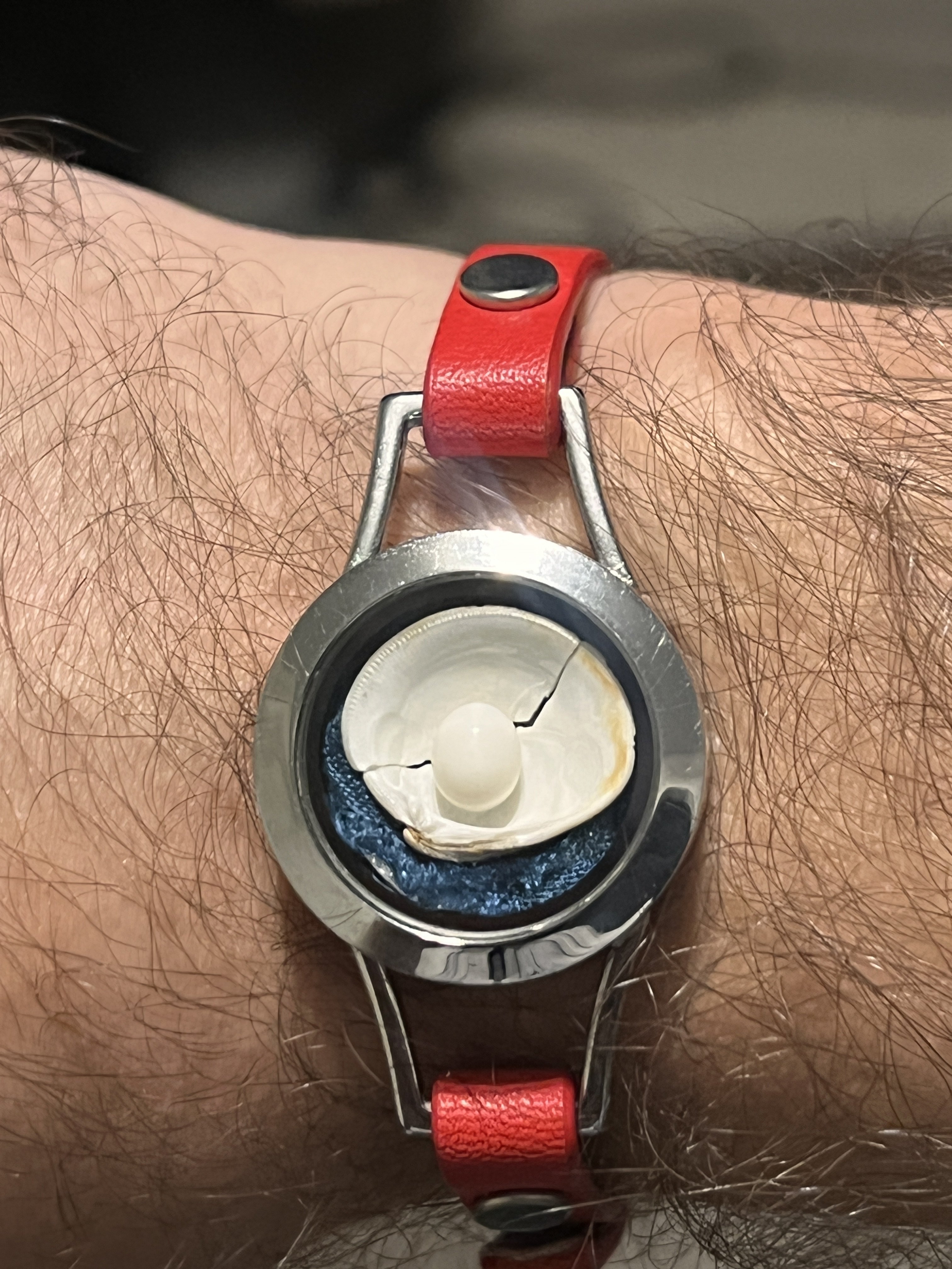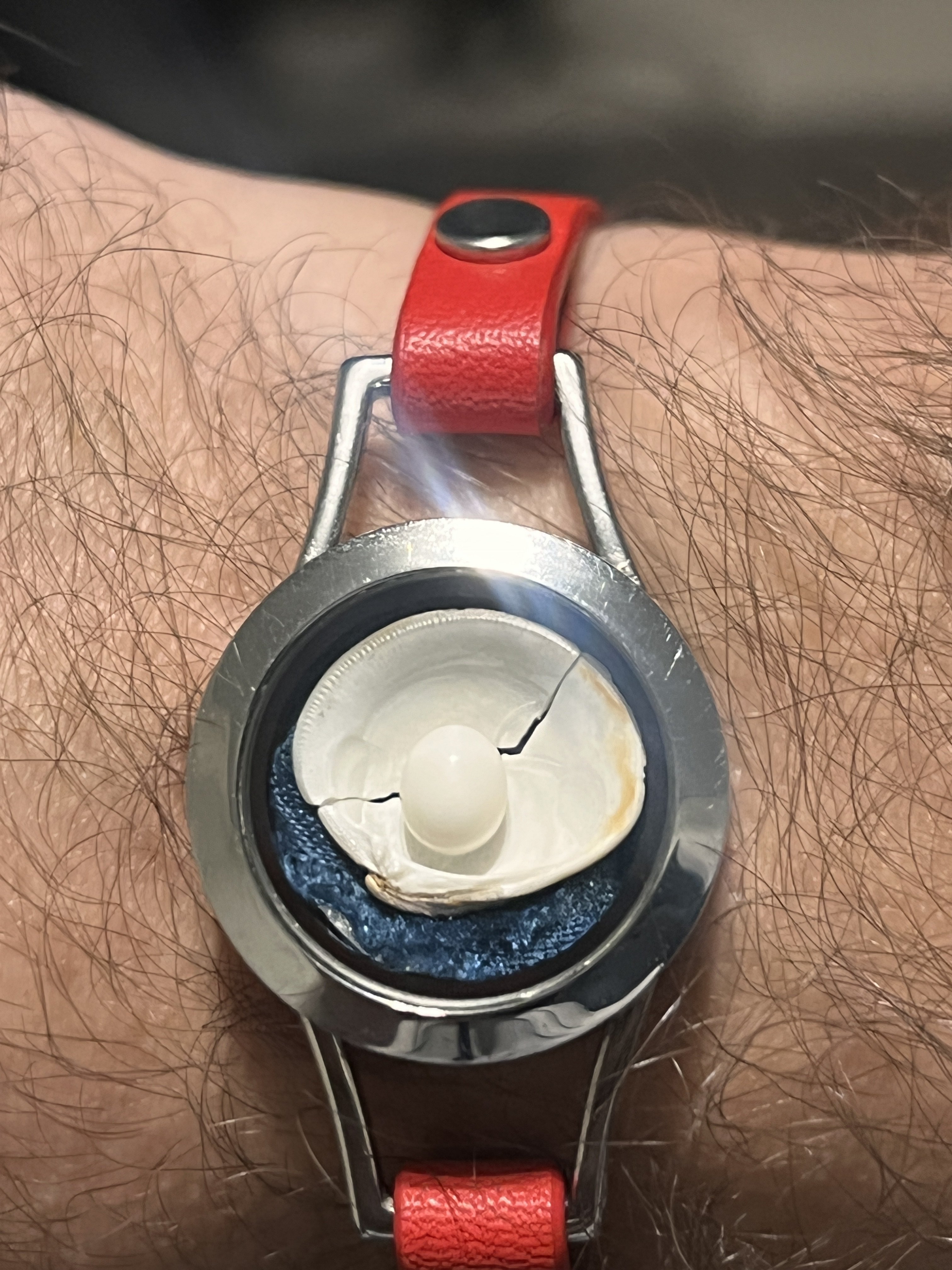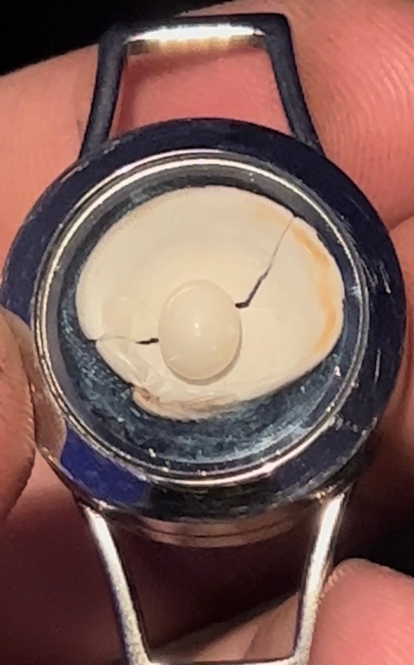 Just wanted to show my locket bracelet I made with a 1.125ct white egg shaped clam pearl. I think it has the best luster out of them all. It glows as shown in the photos.