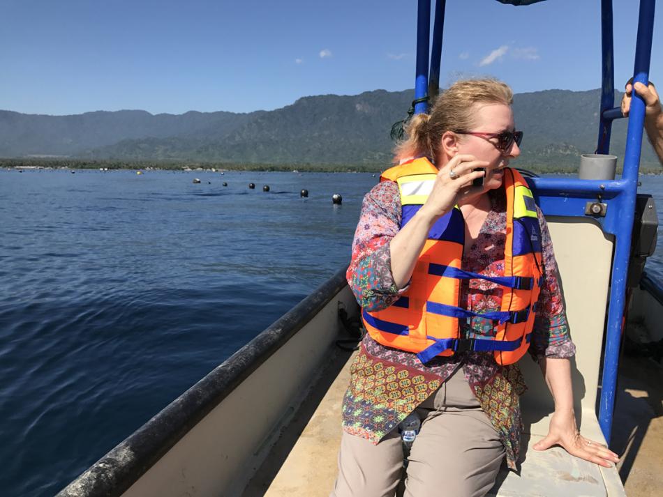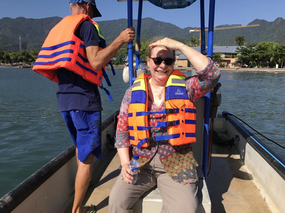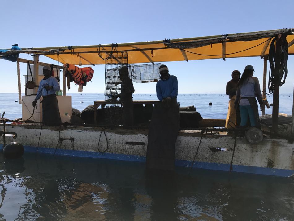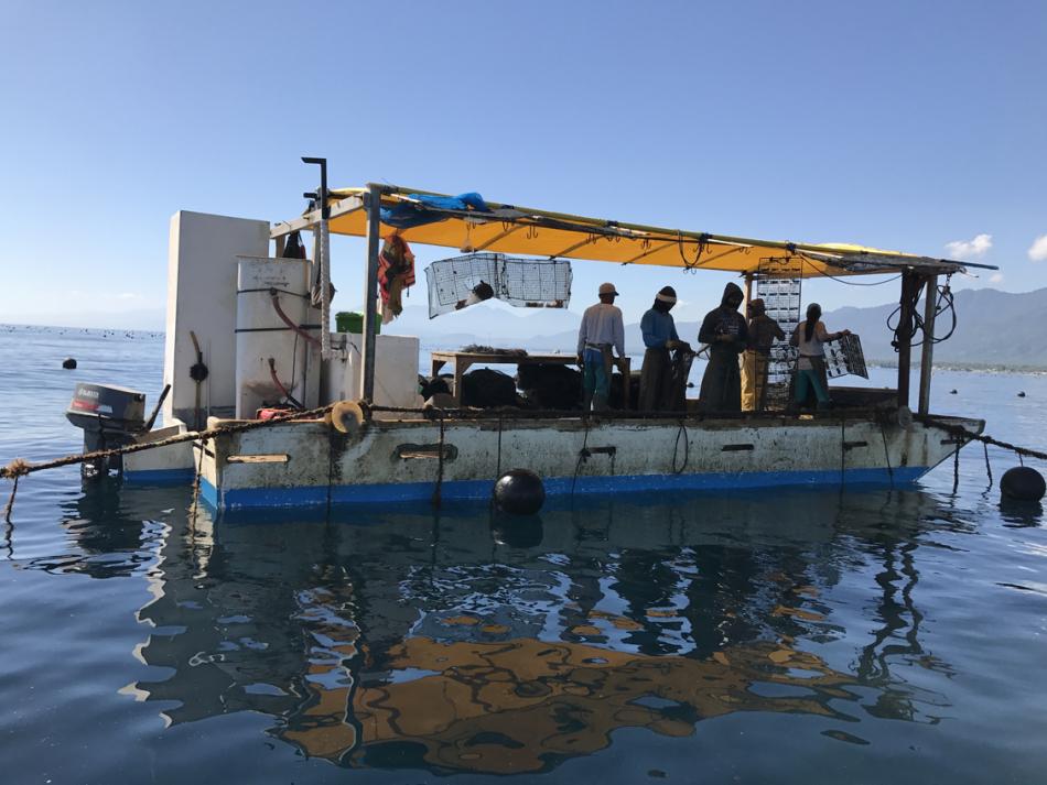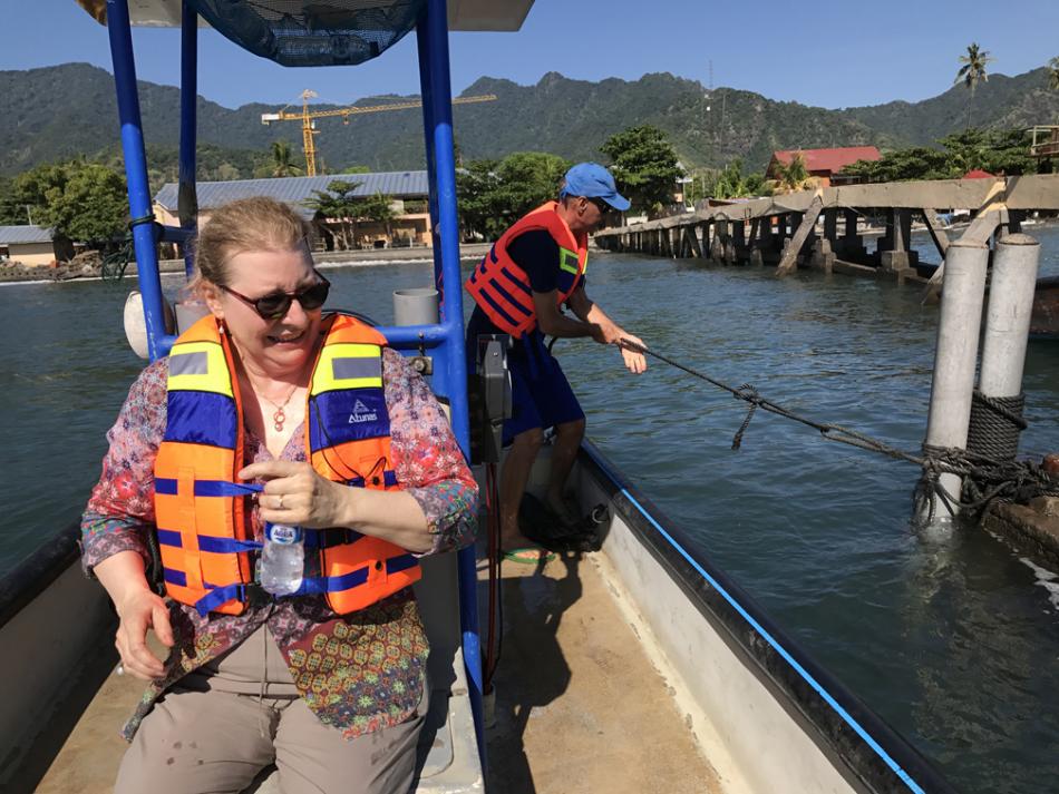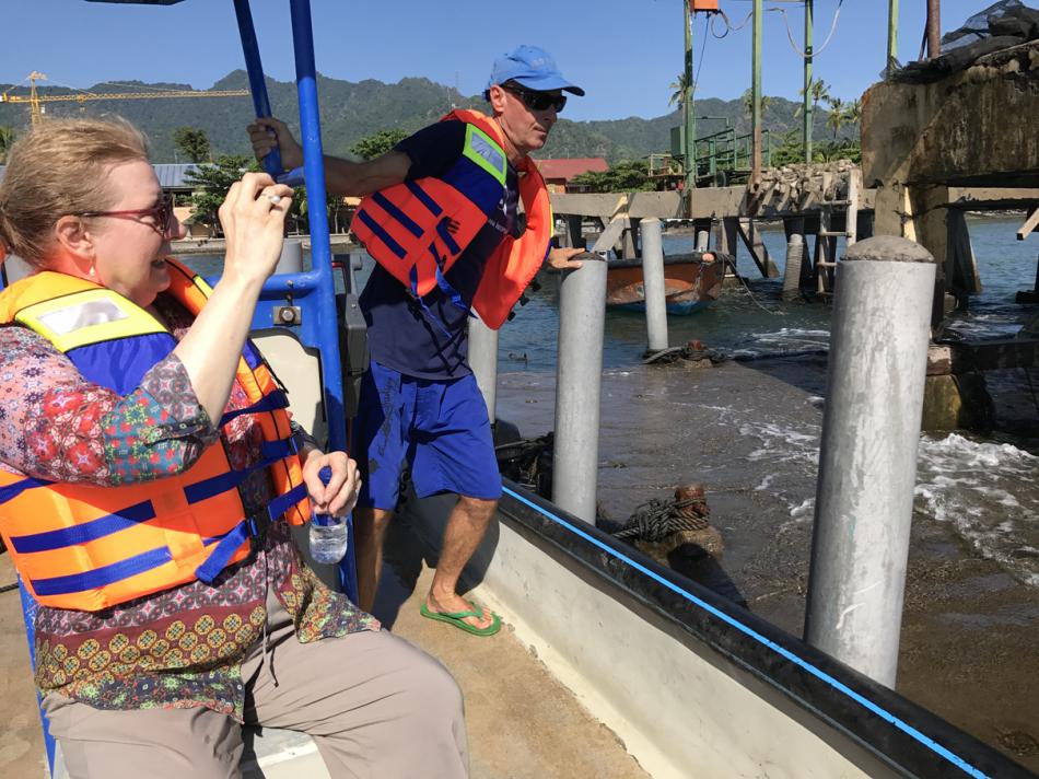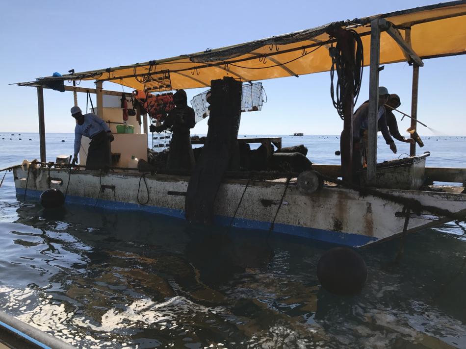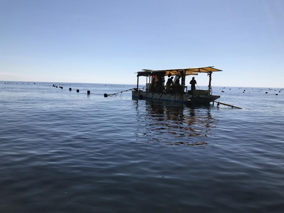 This is the first boat we will visit. Note how clear the water is. As Nickolas will explain, this is both a positive and and negative.