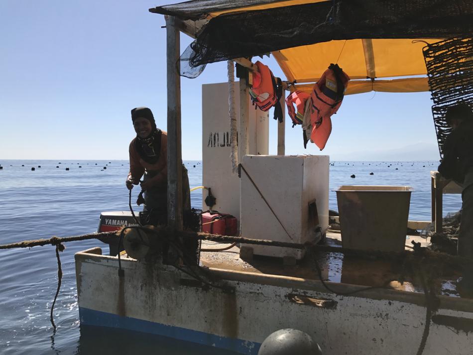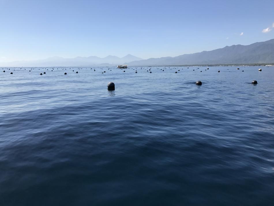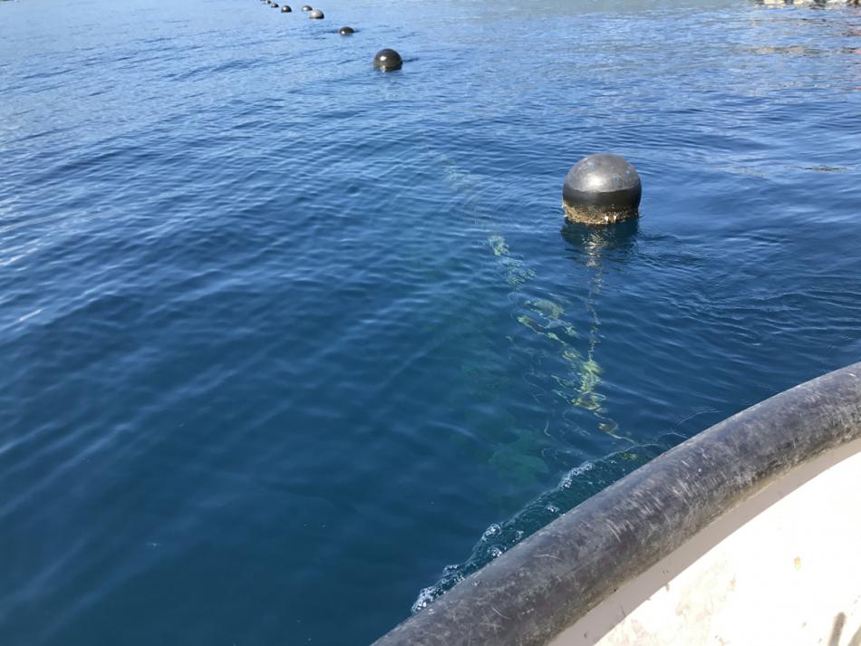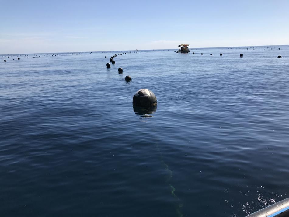 We head out to the farm. Now we are in amongst the rows of buoys.
