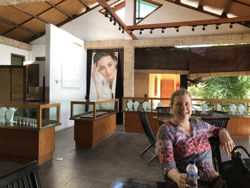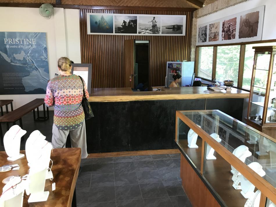 Upstairs to look around at the gift shop while we were waiting for the boat to take us out to visit the workers on the Pearl Farm itself.