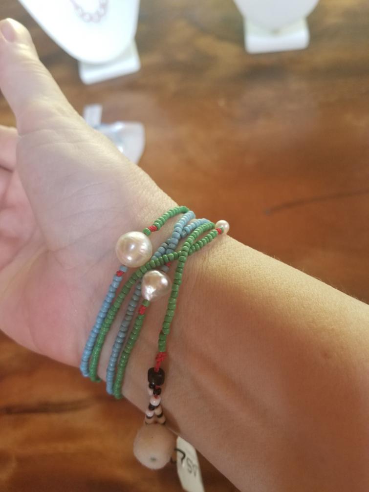 Trying on a necklace/bracelet. I liked this design.