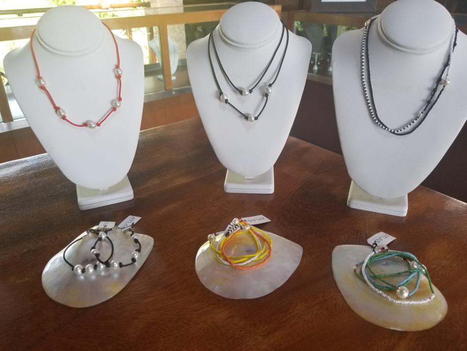 We were up bright and early on Pearl Farm visit day. Partly due to excitement and partly due to the wonders of jet lag. The farm is about a 10 minute drive from the hotel, and we left an hour for travel, so we were way early. They weren't ready for us quite yet, so we got to look around the shoreline and the gift shop. The gift shop at the farm is on the second story and is open air.