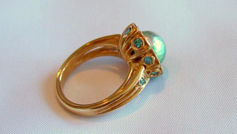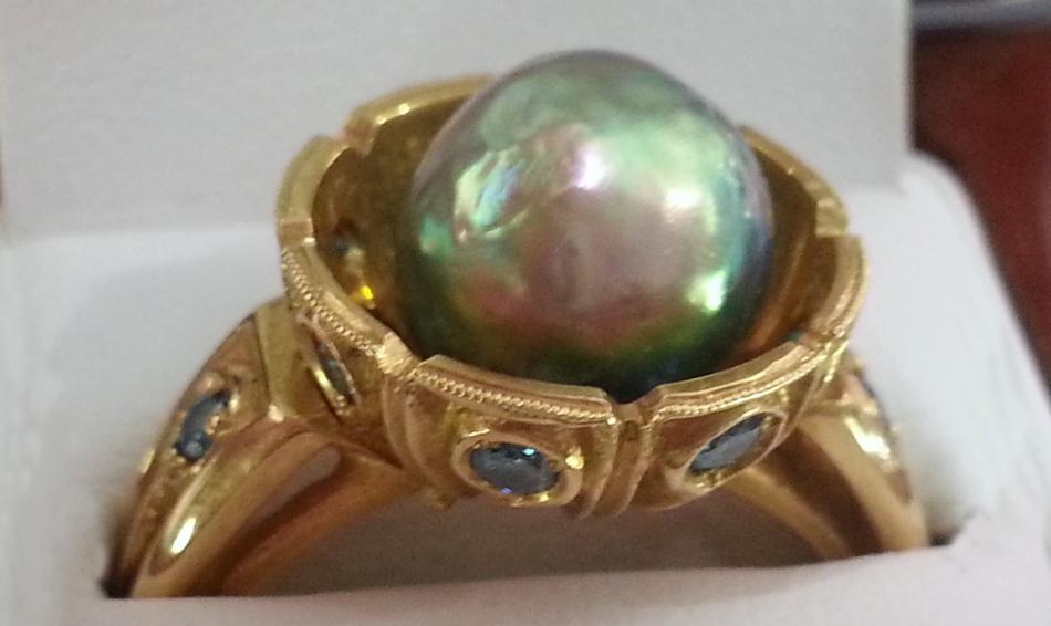 Here is an amazing natural abalone pearl ring from Tish and Wes Rankin of Pacific Coast Pearls. The lighting wasn't the best, but you can get an idea of the pearl's spectacular beauty.