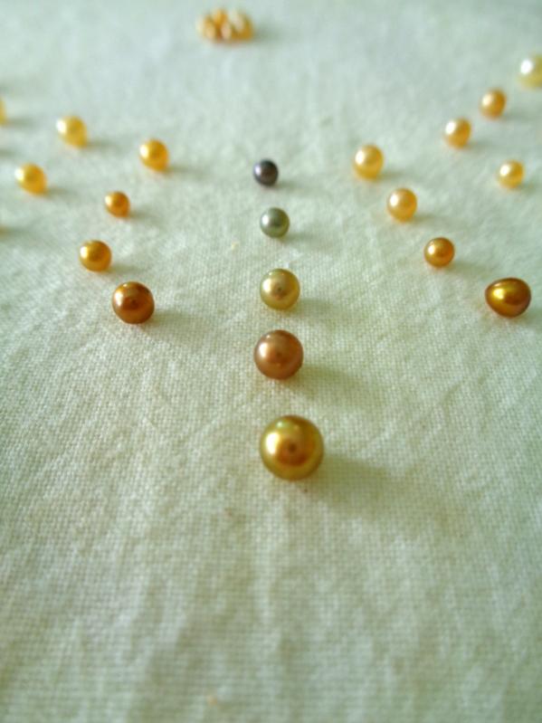What a lovely cluster you have arranged in the background. And please tell me that the other pearls will be used in a necklace, just as laid out.