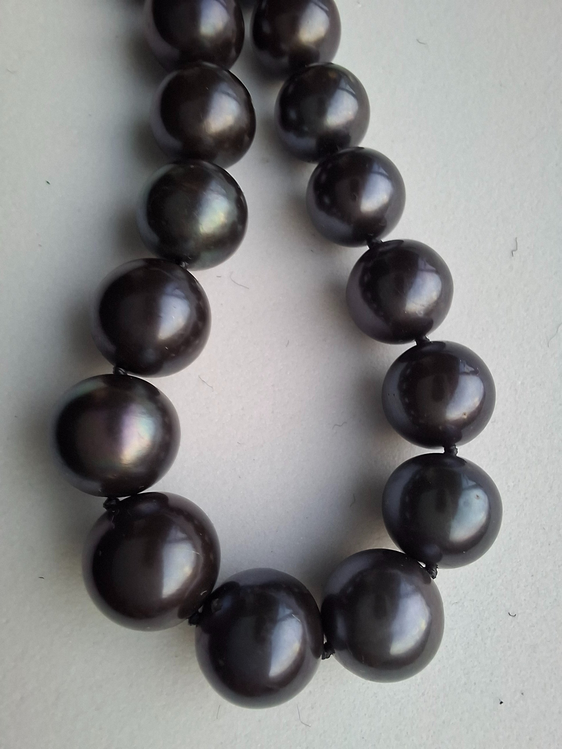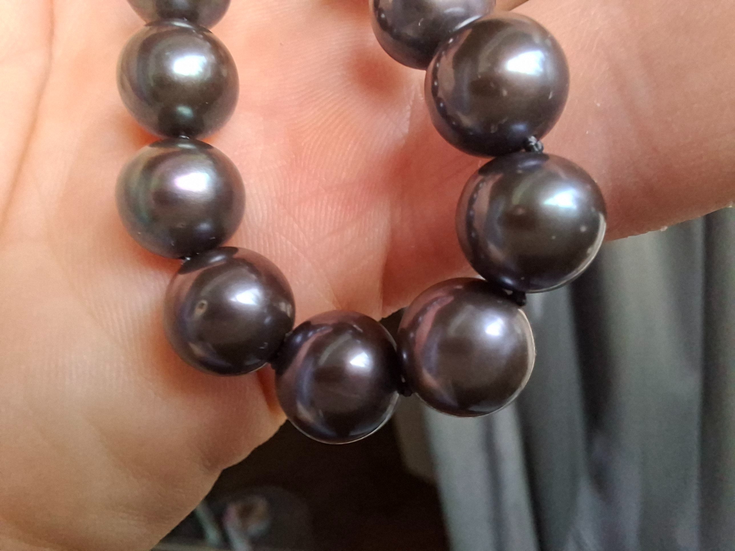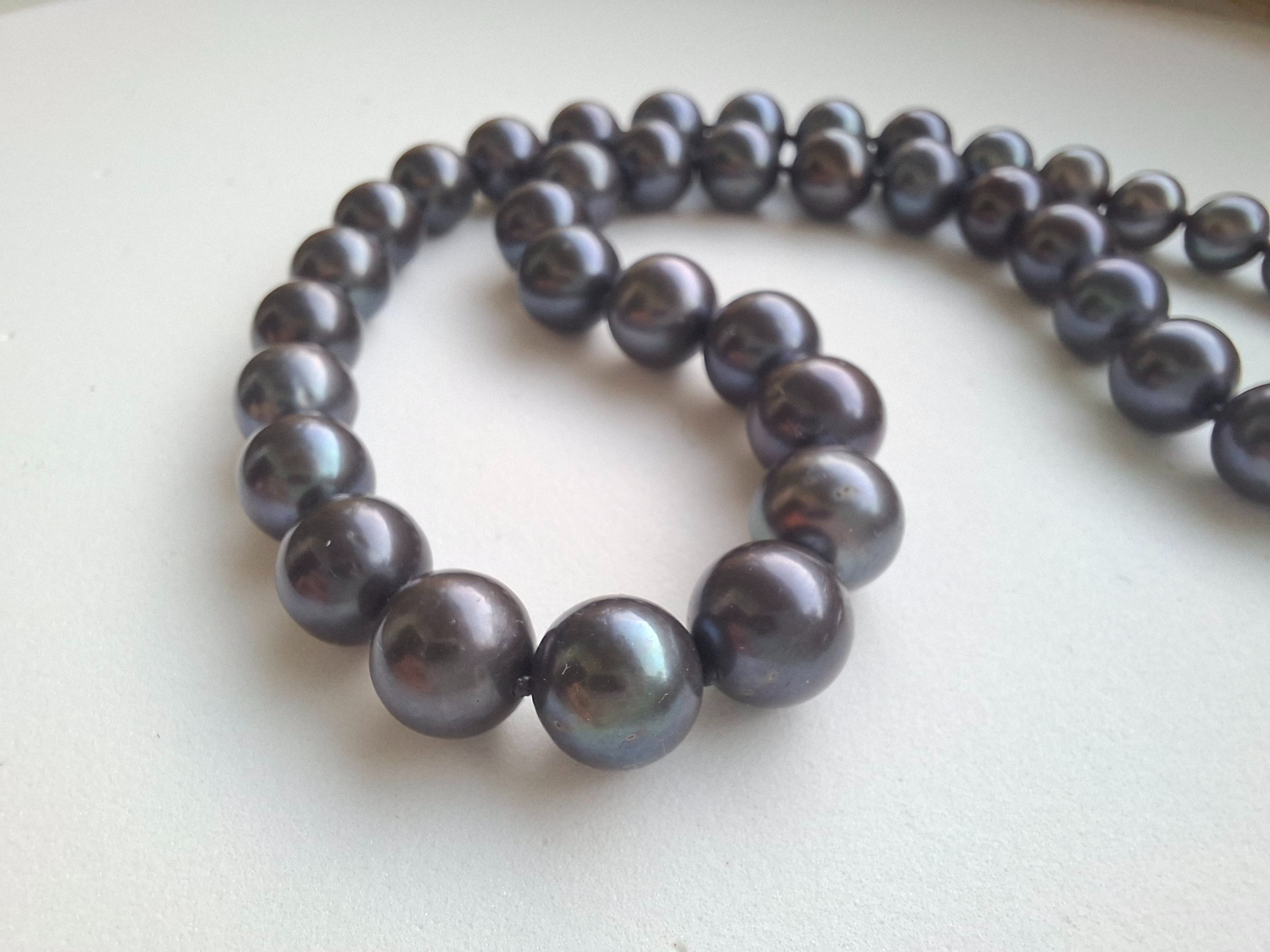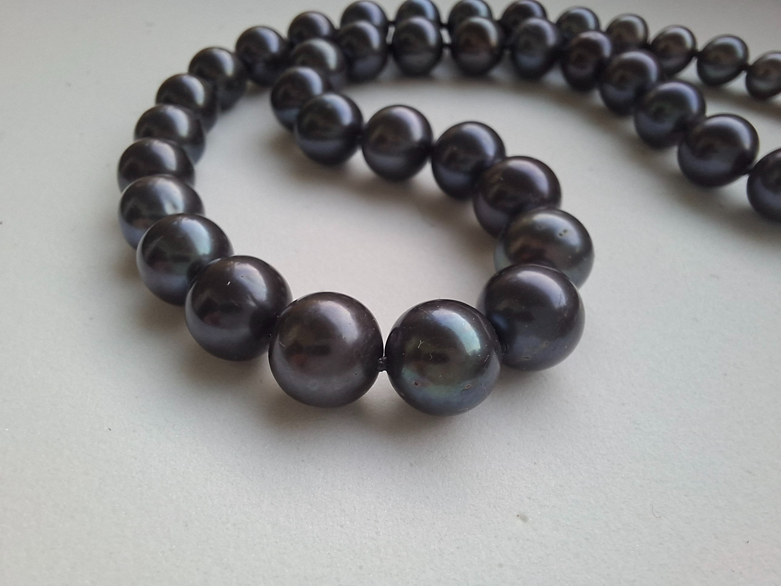 There are 35 pearls, all 8.5-9.5 mm, all round except three which are off-round, quite uniform in colour, with slighly different overtones.