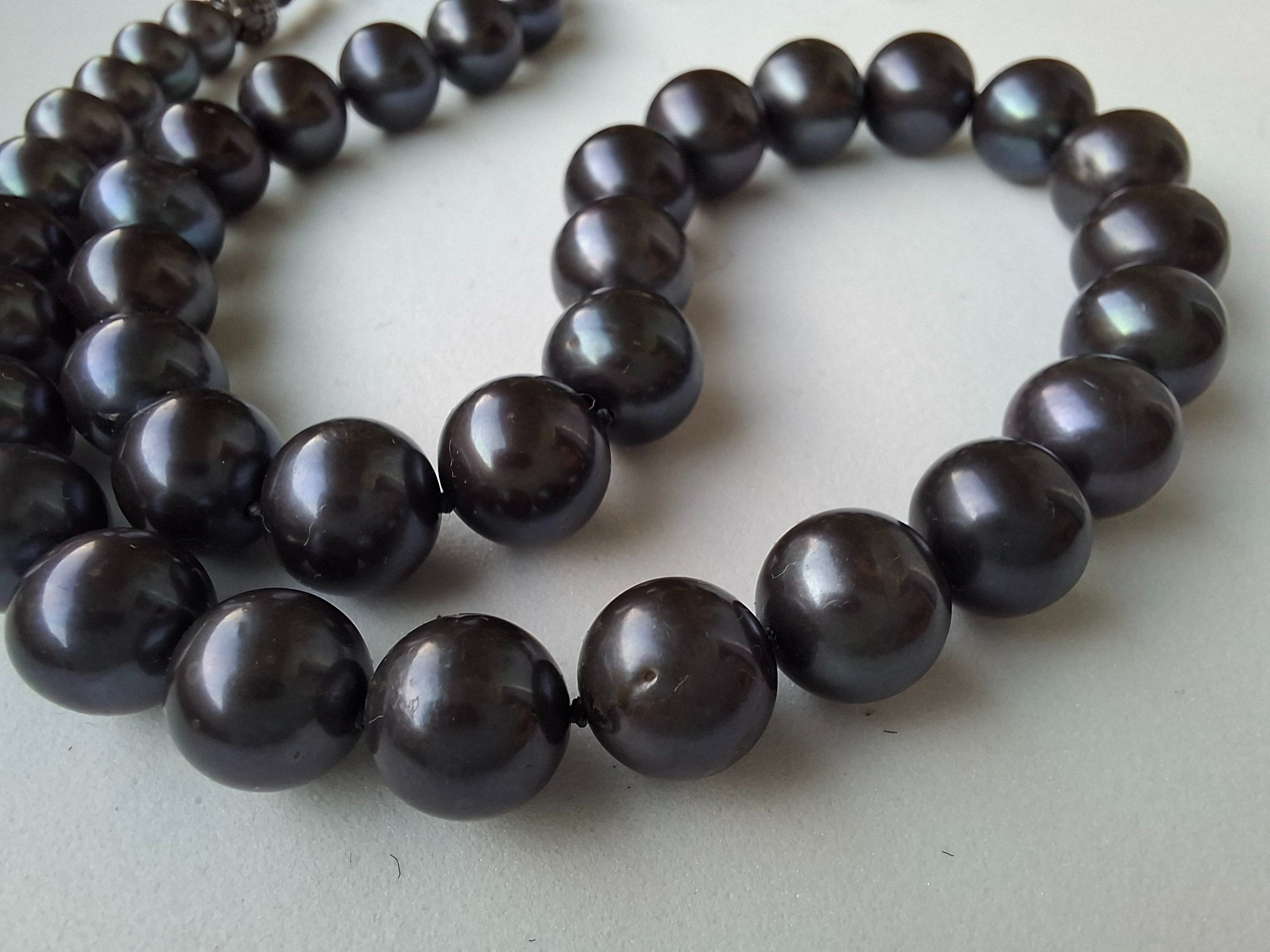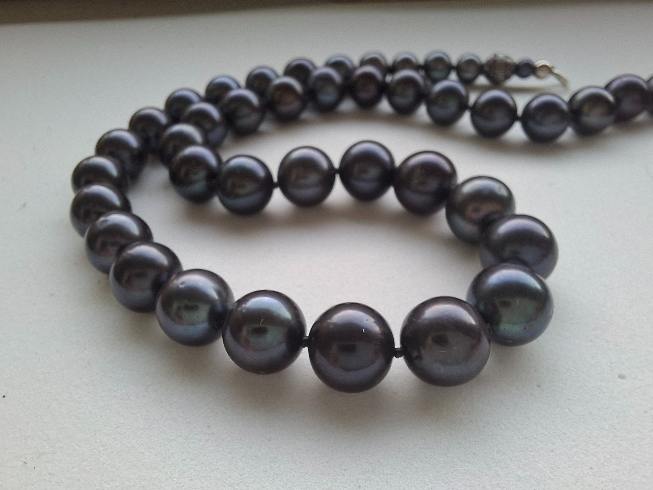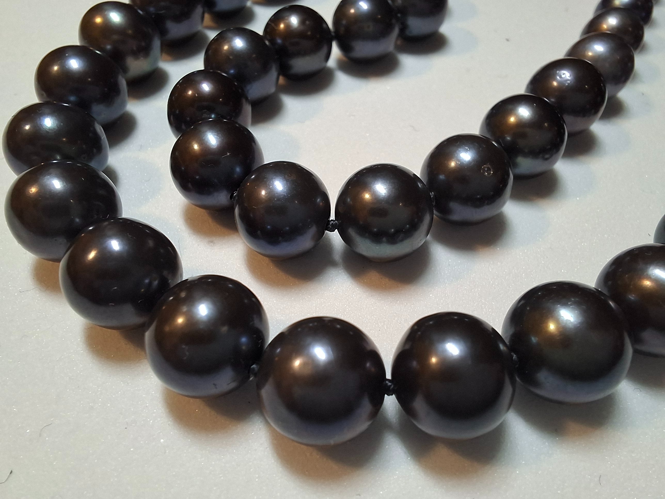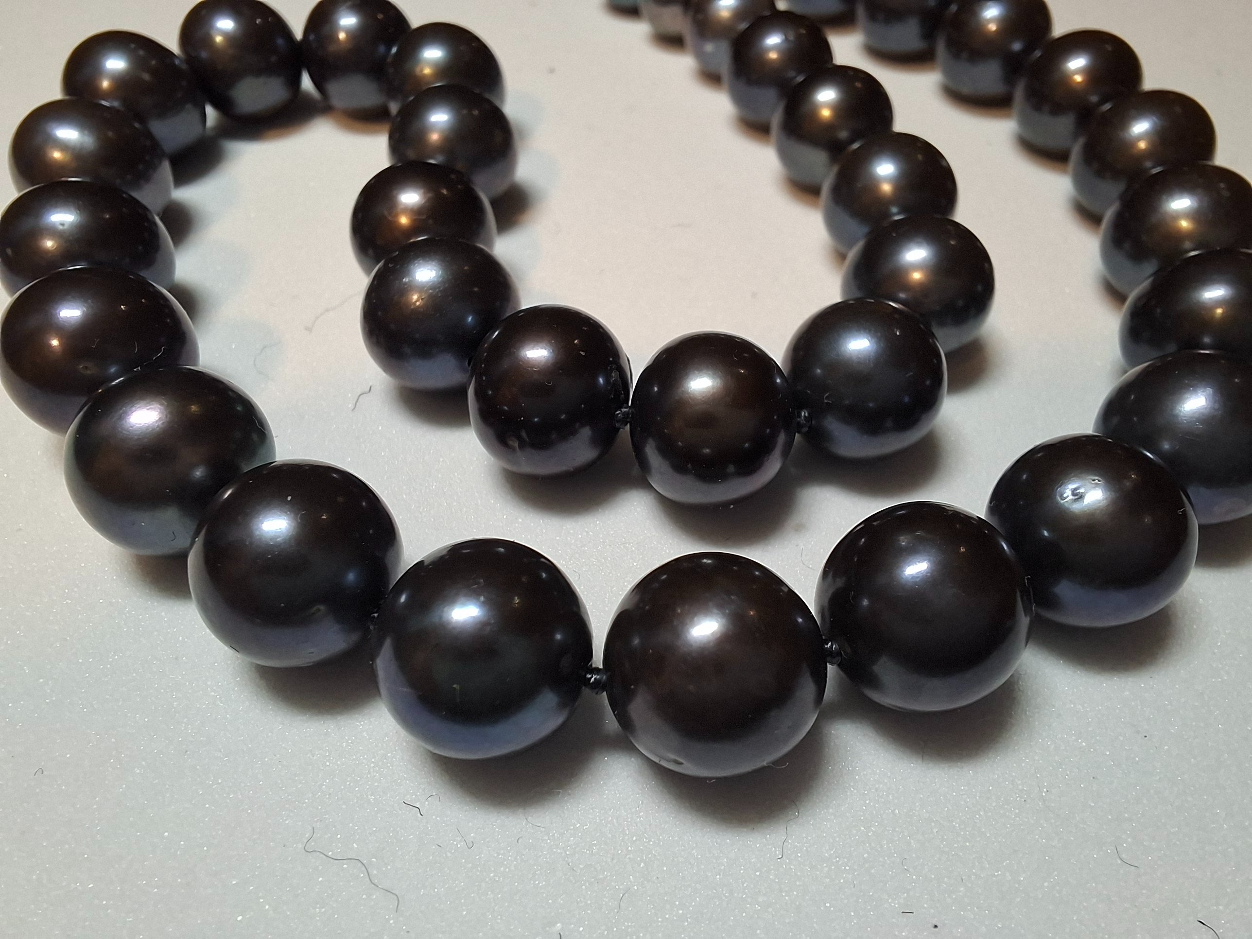 There are 35 pearls, all 8.5-9.5 mm, all round except three which are off-round, quite uniform in colour, with slighly different overtones.