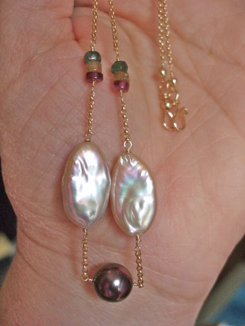 Aragonite (or foliated calcite) are nearly clear crystalline structures. Either may have slightly white or pale brown overtones. The protein that binds aragonite in pearls may contain pigments of any color, even though most species prevail with repetitive colorations.