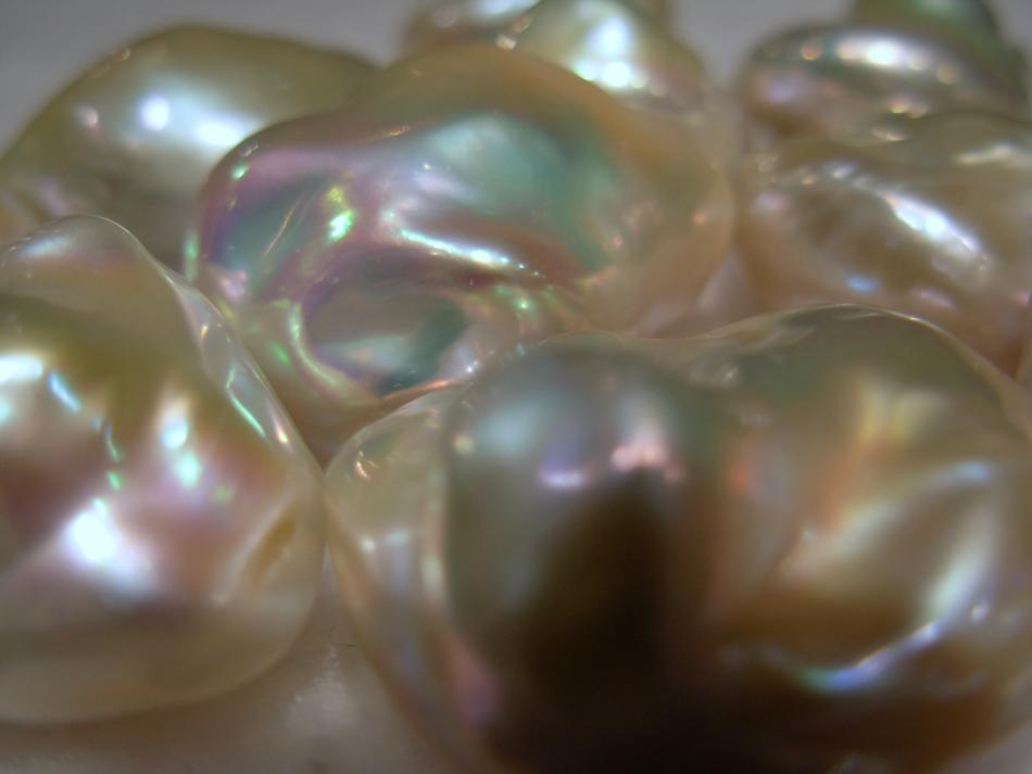 Therefore, the variable color shift from aragonite crystals is described as orient, while the fixed pigmentation of the protein content is described as overtone. The random combination of both including other contaminants such as calcite, metals etc., the array of stray light is described as iridescence.