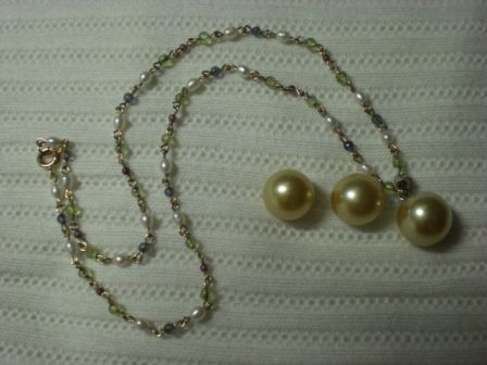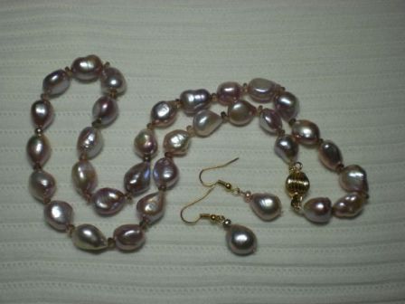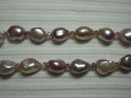 The first piece is a strand of lavander baroque FWs with faceted andalusite beads...
