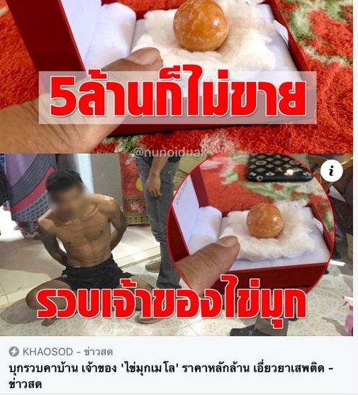 For Mr. Code Chai, it was a news report for picking orange pearls or ′′ pearl melo ′′ which is rare in the seaside area behind the house. It was hilariously posted on Facebook that there was a businessman. I want to buy for 5 million baht, but I haven't sold it. When Melo was found, there was a Sheriff of Hua Sai and villagers travelling to see Melo pearl continuously. #until the officer entered. Make an arrest.