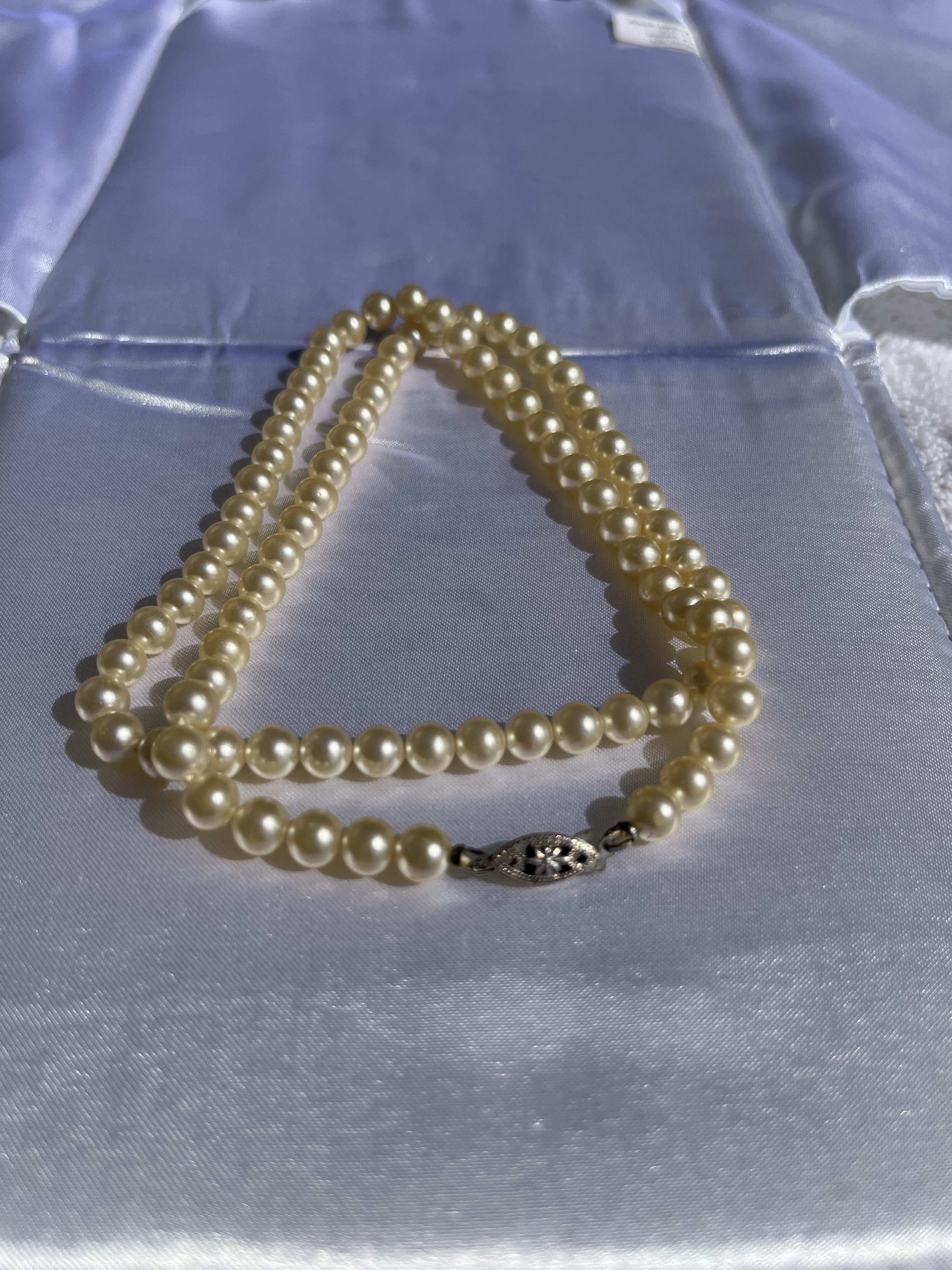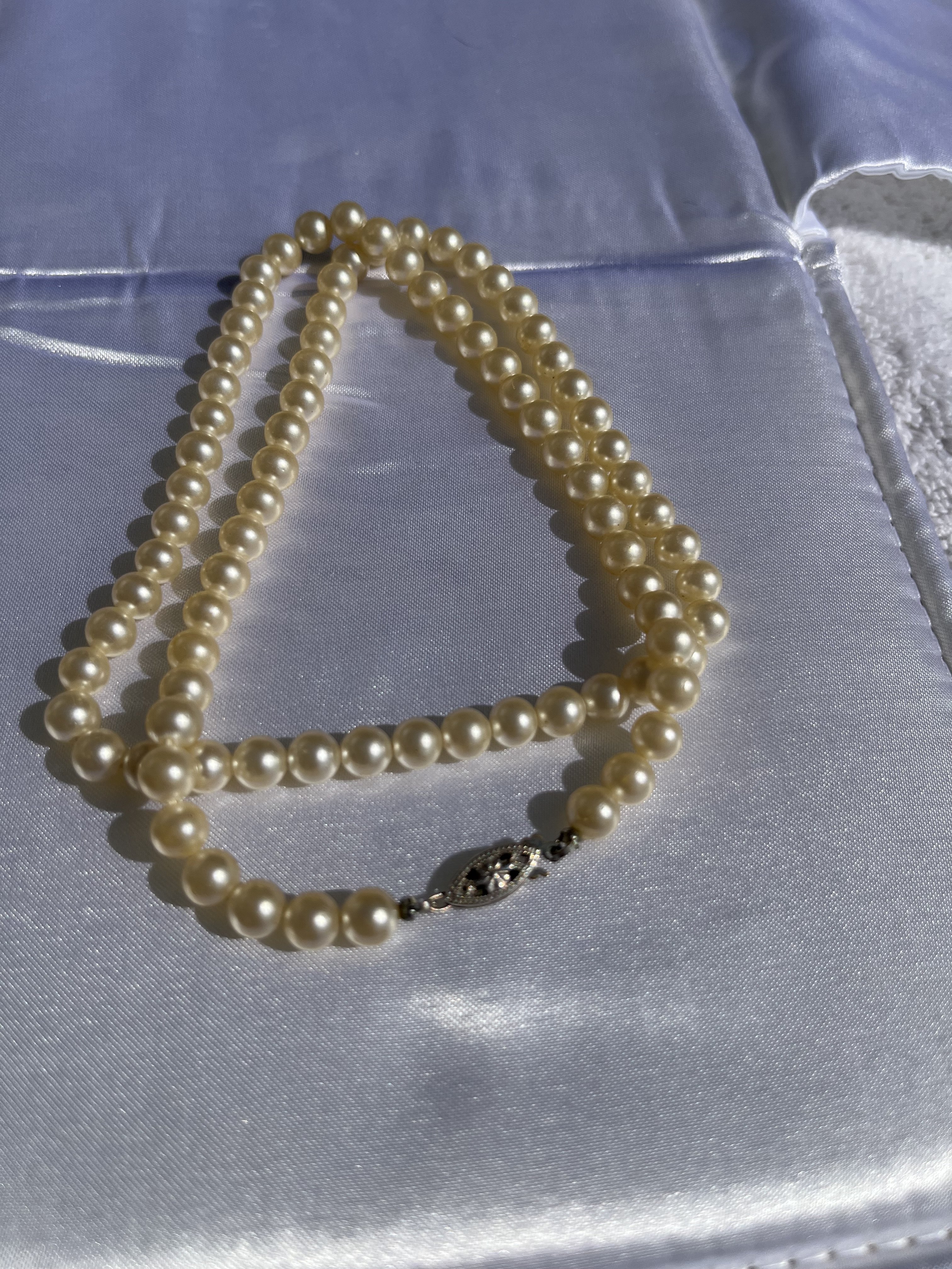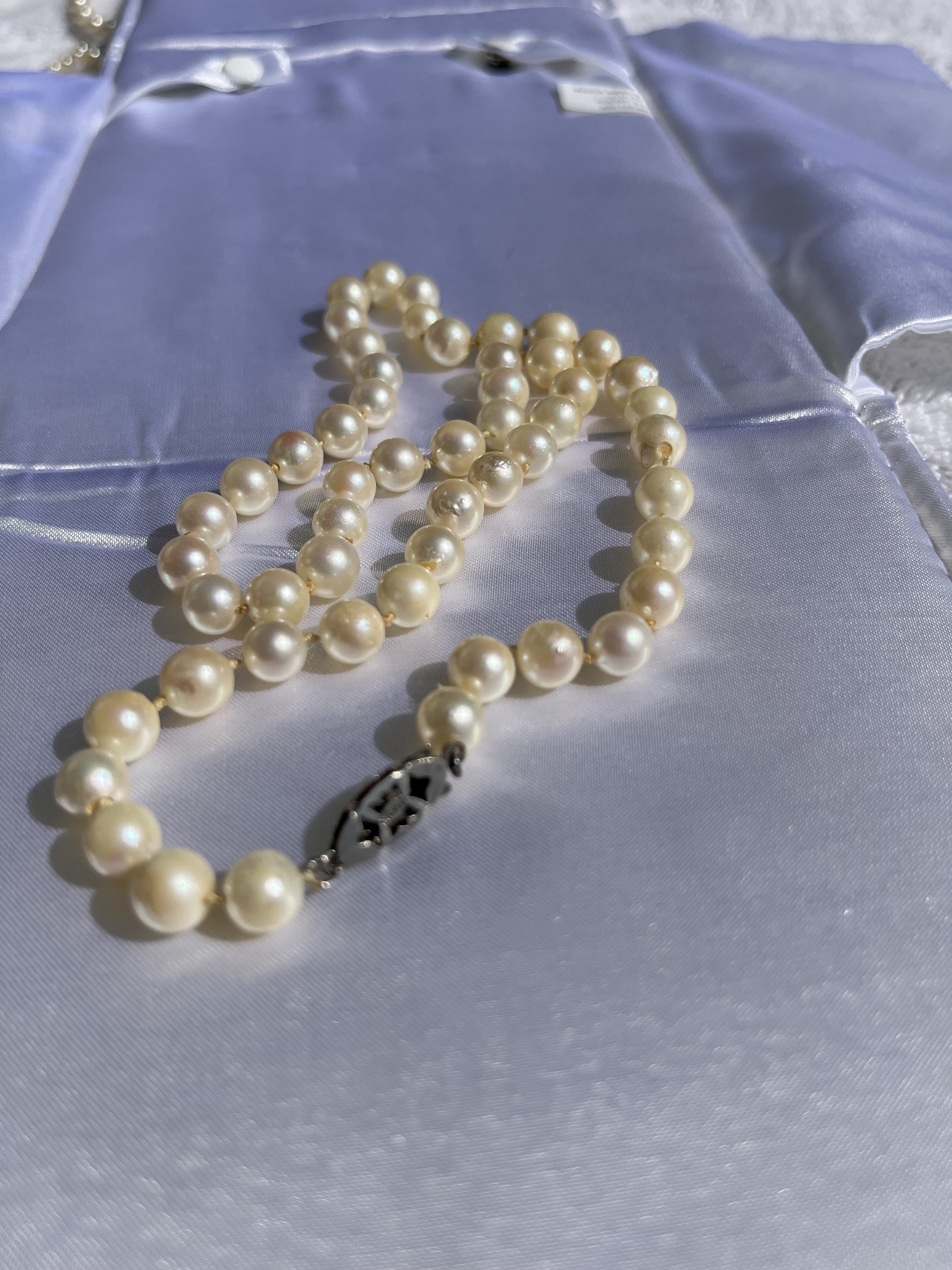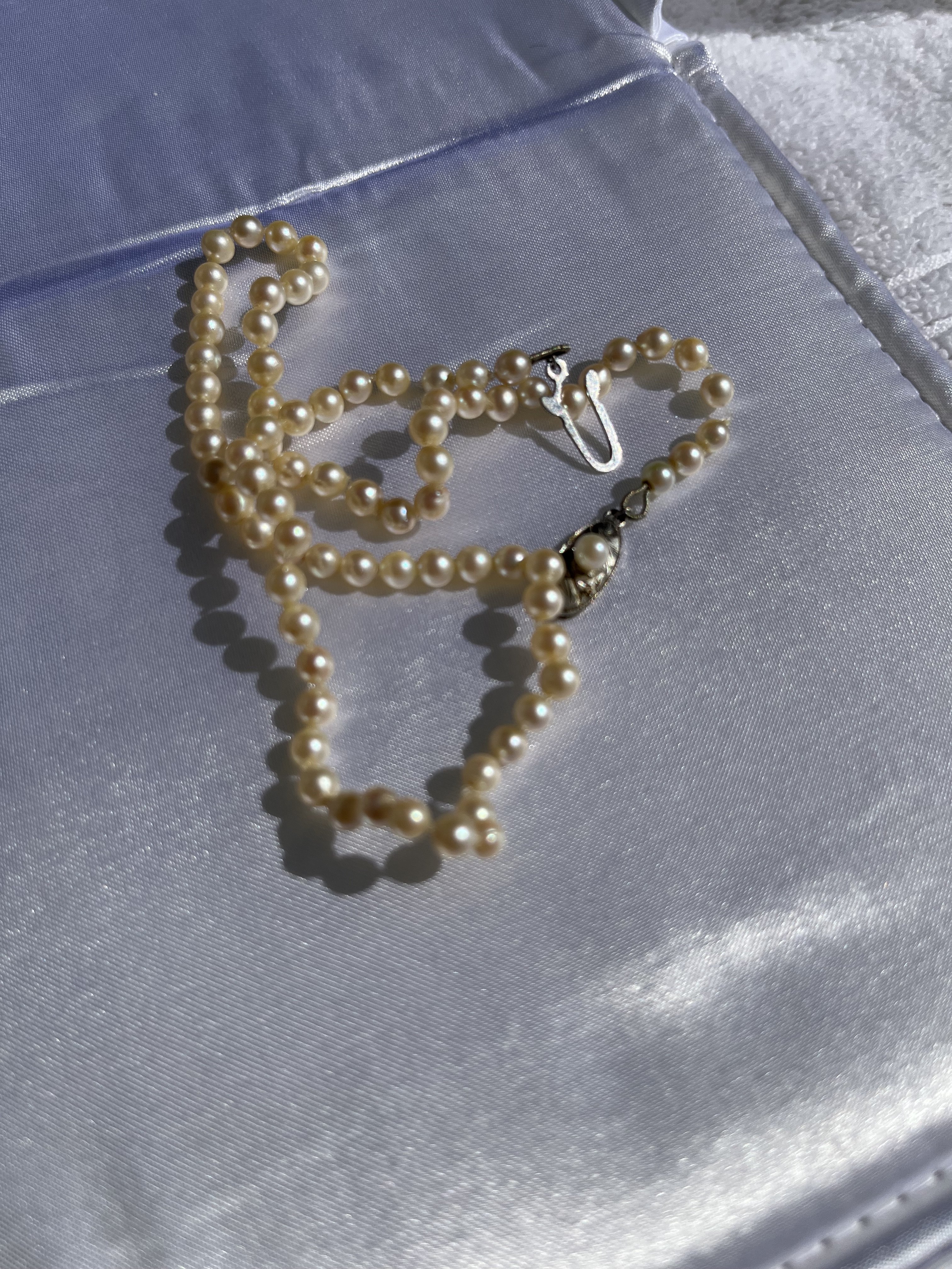 The first set has been restrung in what feels like fishing line. I have no doubt these tiny pearls are real but want info.
