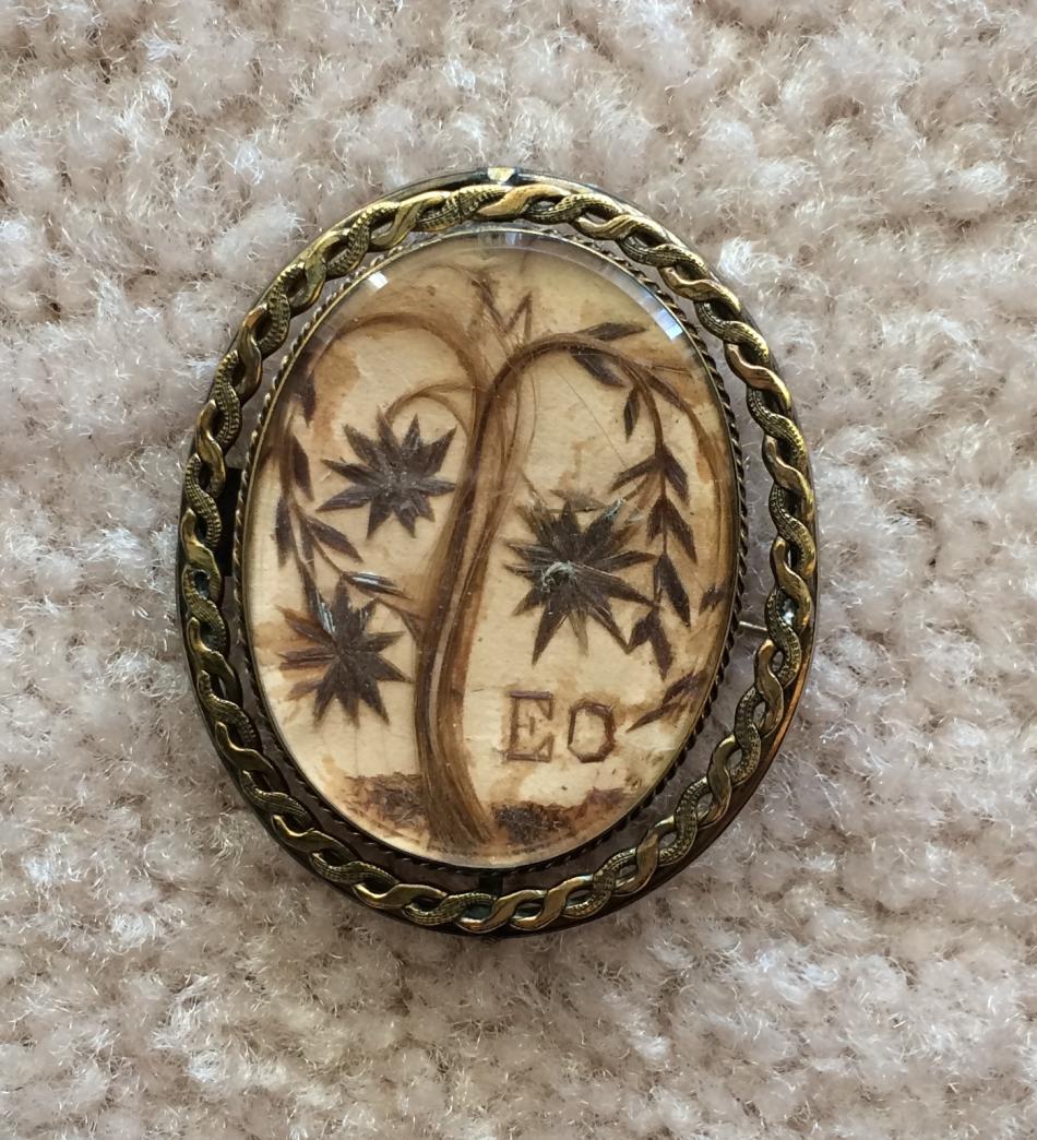 It swivels to reveal Victorian hair work on the back under glass. The swivel pin is loose, so I don't think this is wearable since the center tends to fall out.