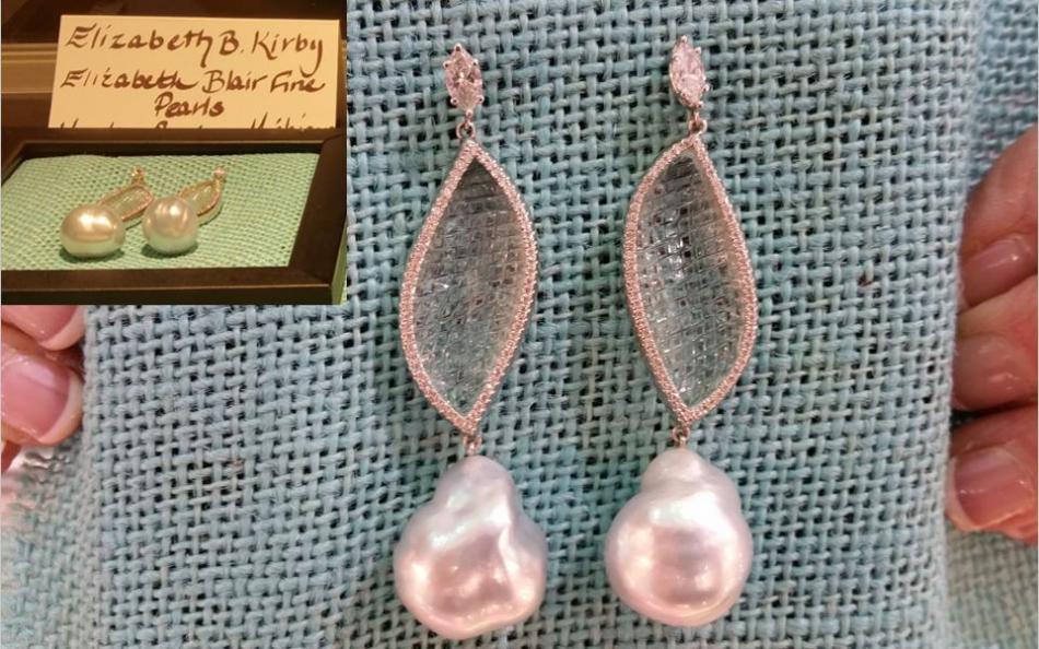 Kathy Grenier, of Imperial and CPAA, pointed out the wonderful carving work within these earrings by Elizabeth B. Kirby of Elizabeth Blair Fine Pearls and helped me to get a photo where it could be seen and appreciated. These would be perfect bridal wear.