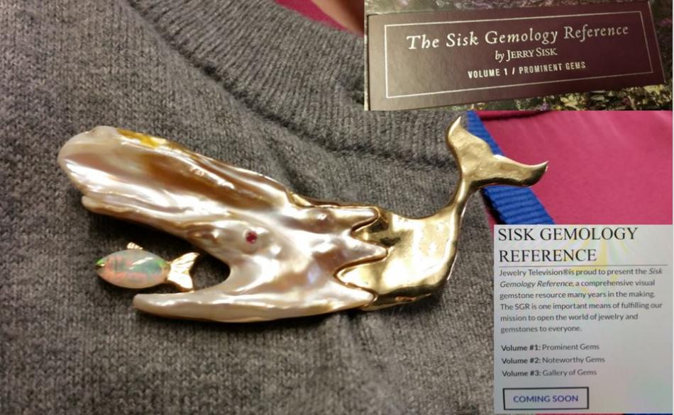 You meet the greatest people in Tucson. The conversation starter for Teresa Polly of Jewelry Television was this dreamy pearl and opal brooch owned by Christopher Clark. It was featured in Volume 1 of the Sisk Gemology Reference by Jerry Sisk, whose untimely passing in 2013 left a huge void. Teresa shared that the three-volume Sisk Gemology Reference set is being completed and will be ready sometime in March. I've seen the first volume and it looks terrific.