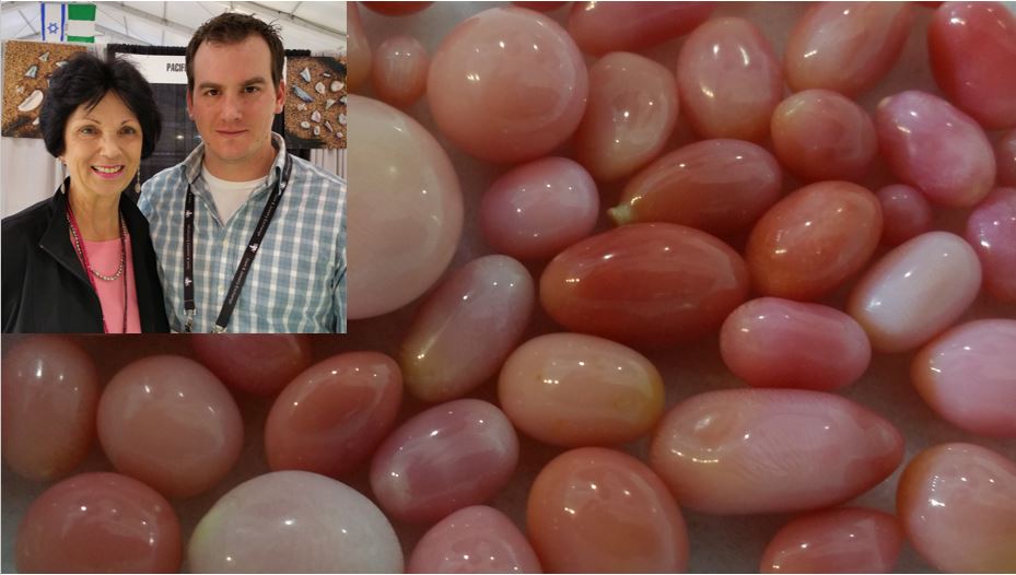 Back on the pearl prowl, I headed to the GJX Show where I visited Pacific Coast Pearls. They only deal in natural (wild) pearls. Tish Rankin graciously allowed me to take many photos, which will be shared later on Pearl-Guide. Here is a lovely clutch of pink conch pearls. My friend Jeremy Norris postulates that conch pearls are subconsciously enticing as they look like jelly beans. Definitely for adults!