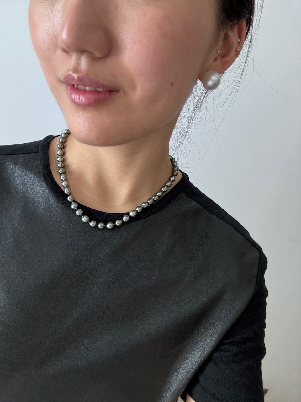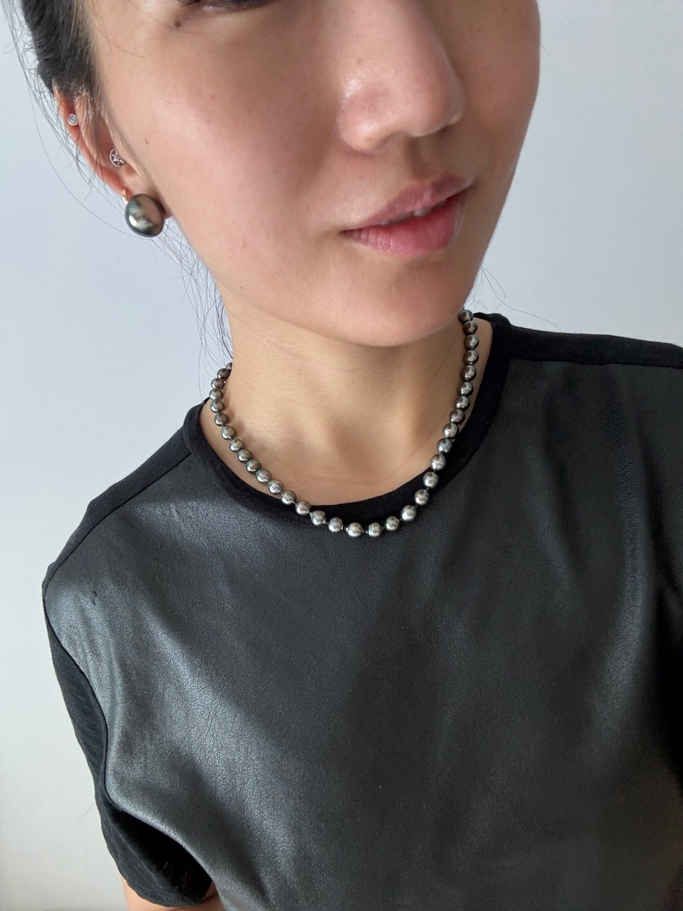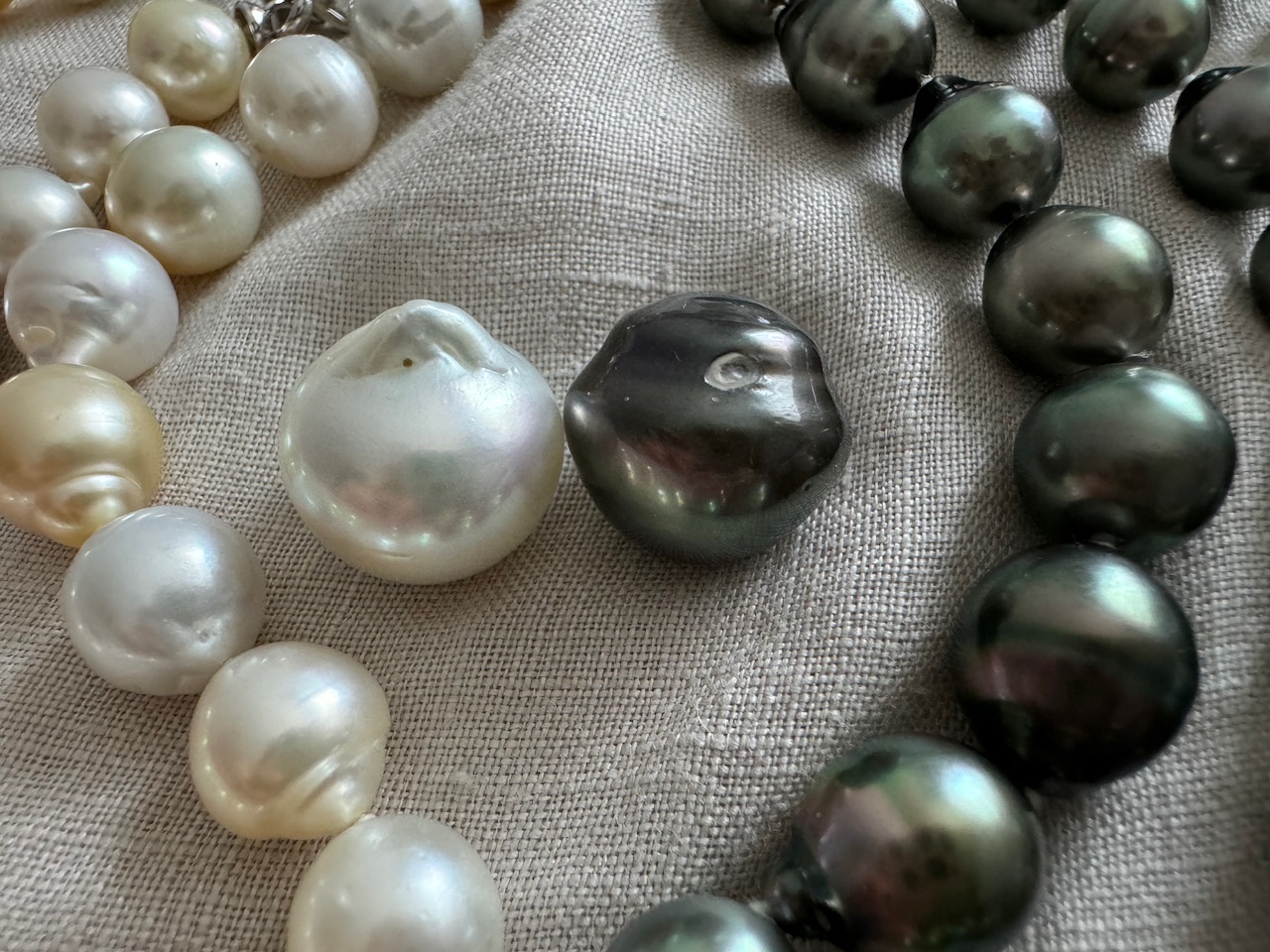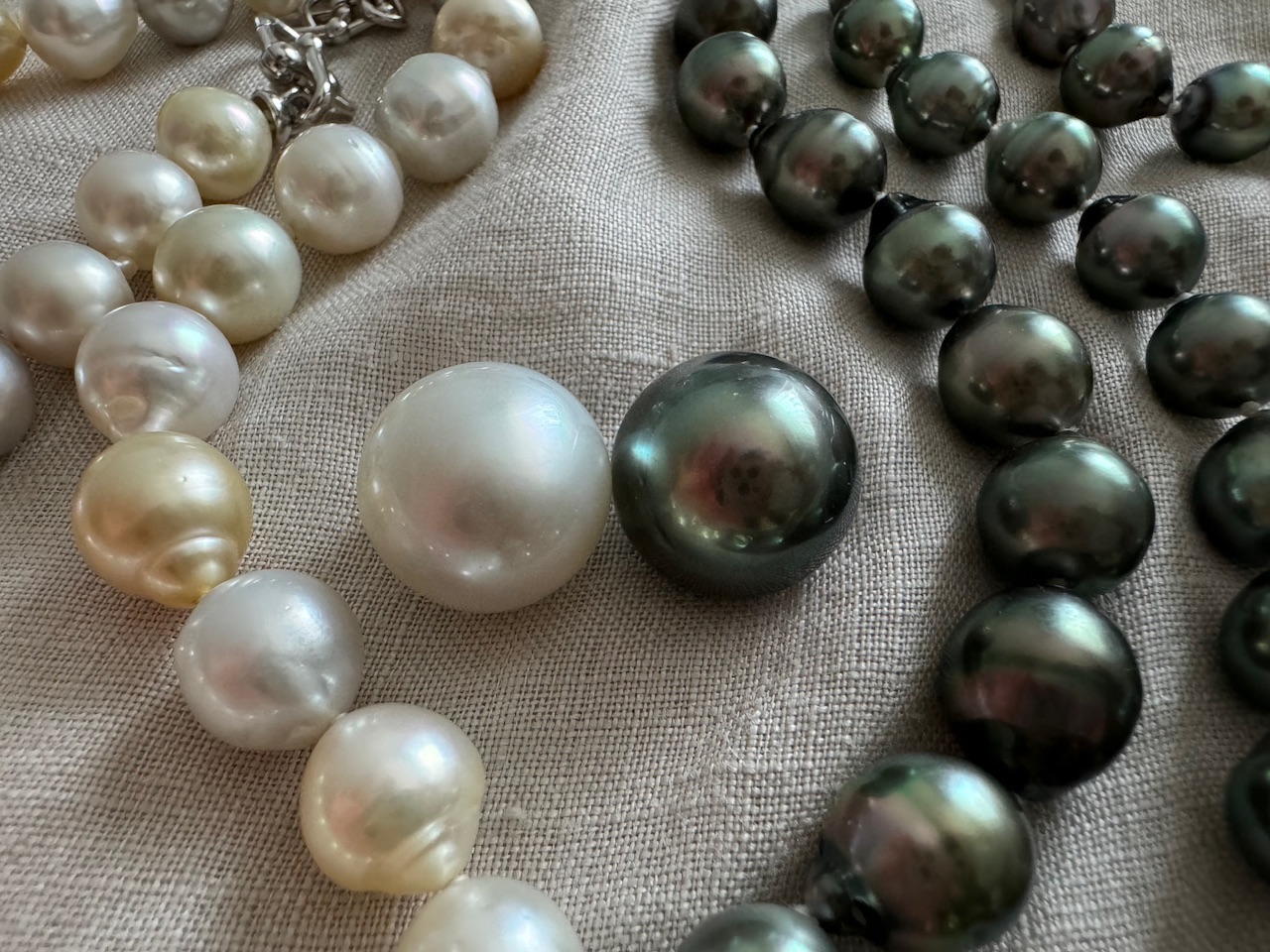 I’ve heard lots of people say that darker pearls look smaller, so it’s okay to have a larger Tahitian and a smaller white pearl as a mismatched set.