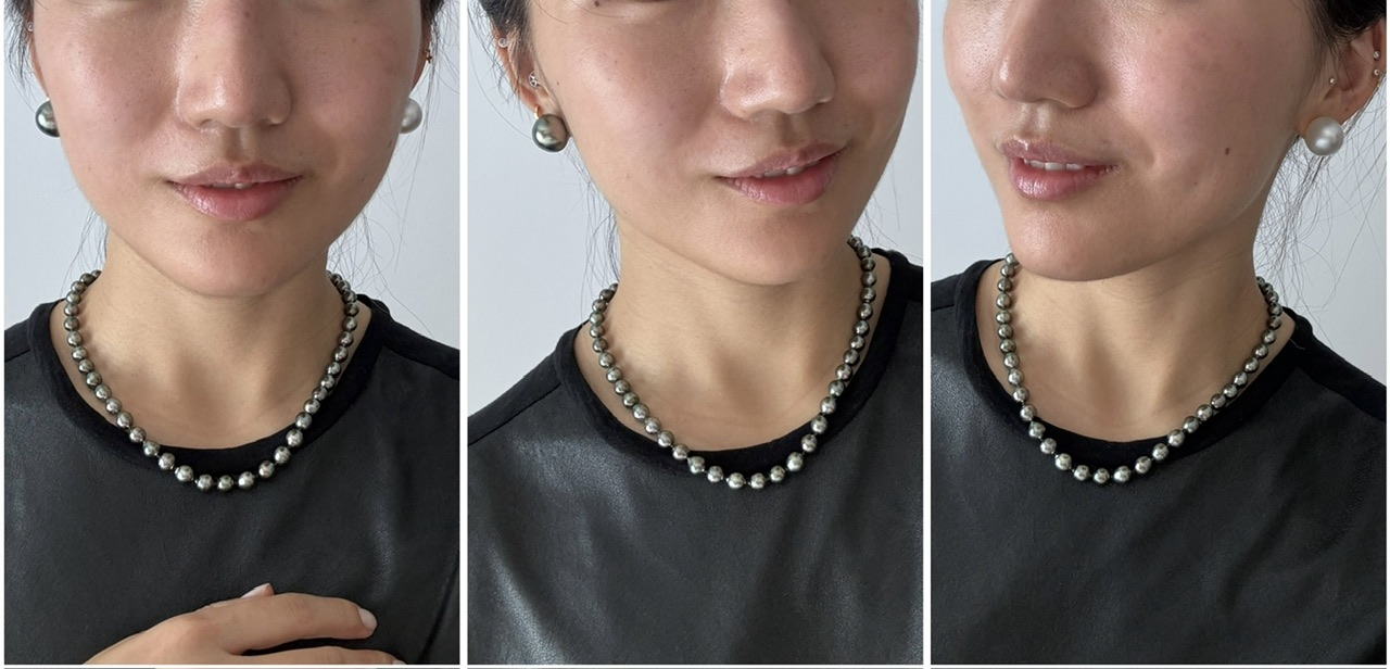 I’ve heard lots of people say that darker pearls look smaller, so it’s okay to have a larger Tahitian and a smaller white pearl as a mismatched set.