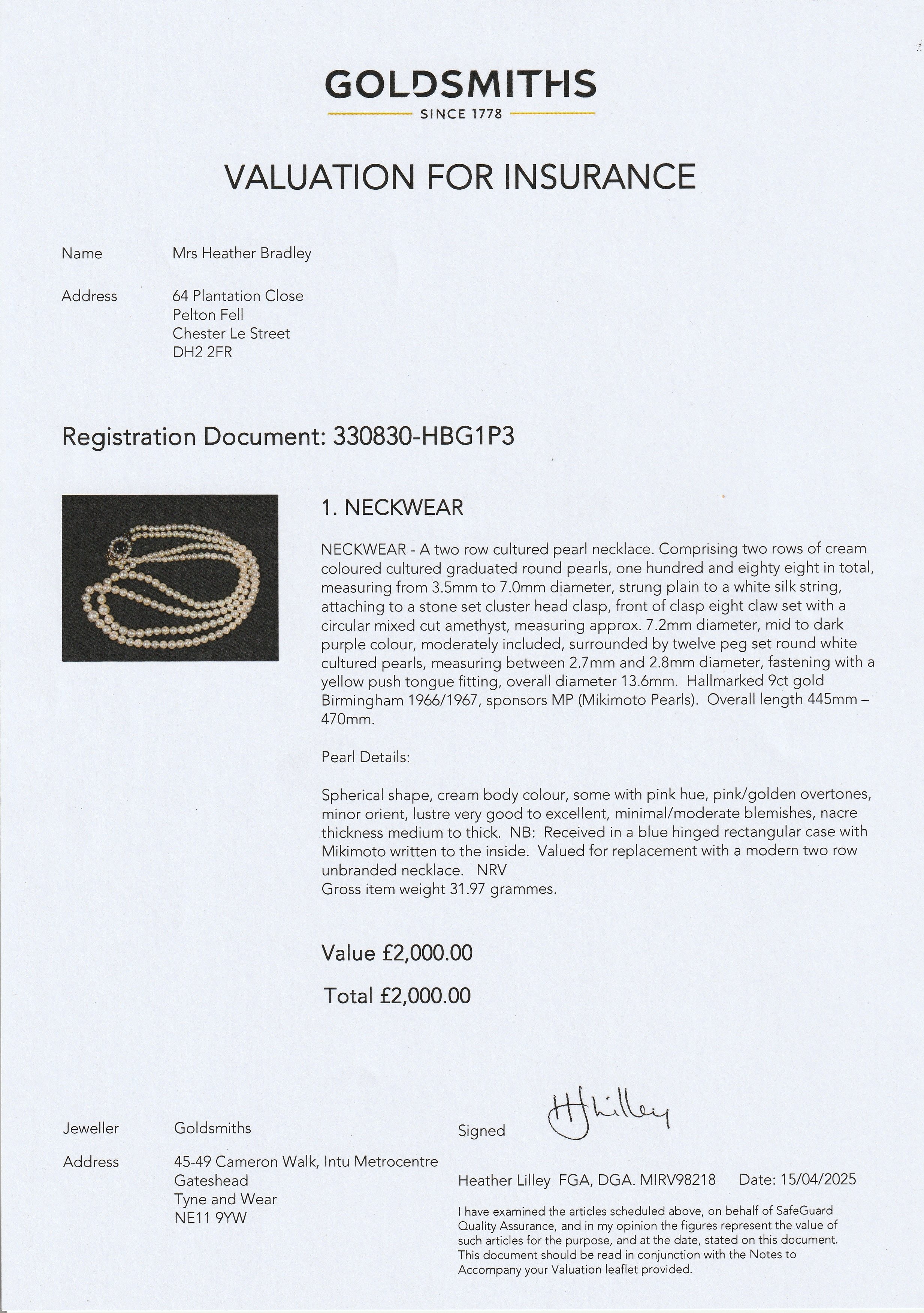 The image revealed that one pearl looked different to the rest, raising the question, have the pearls snapped and been re strung? He also questioned the Star if David pattern on the clasp and the Pearl's around the Amethyst also look different to the rest of the string. I will post the result when we get them back in a month or so.