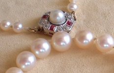The extraordinary thing about these pearls, that it takes a pearl nut to appreciate, is that they are HEAVY. The concept of grain weight has been virtually lost with the takeover by cultured pearls.