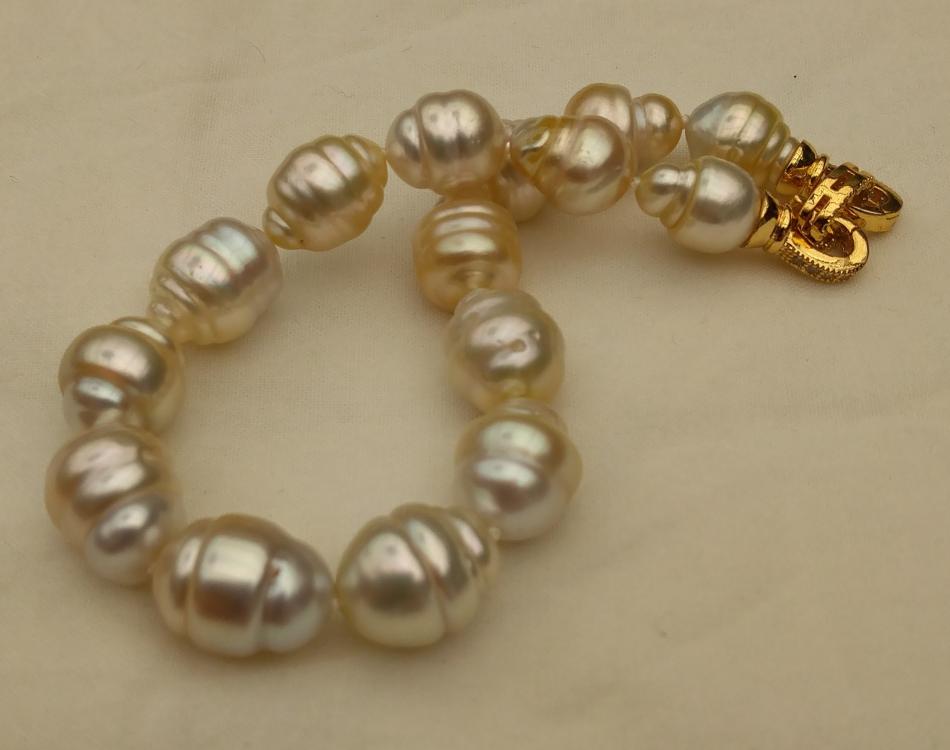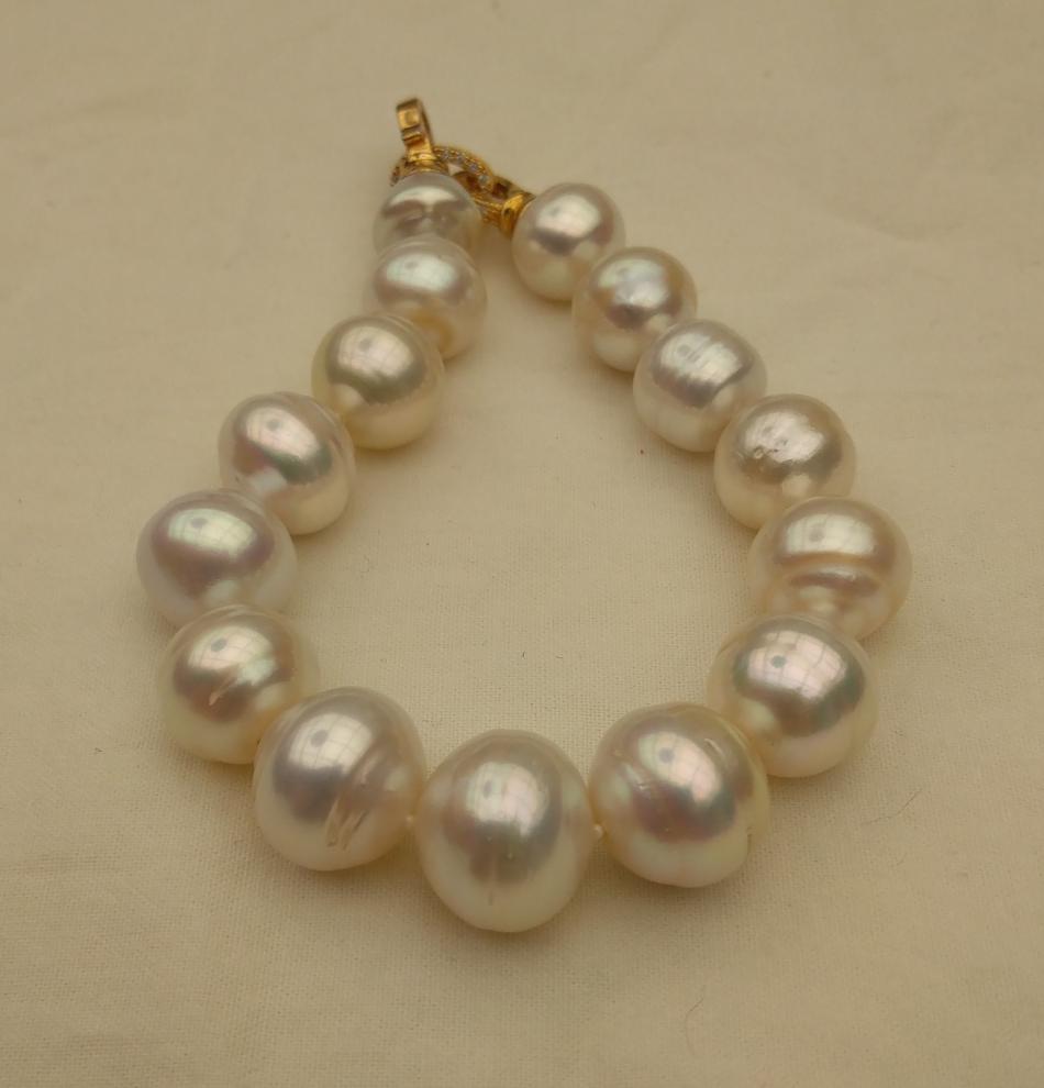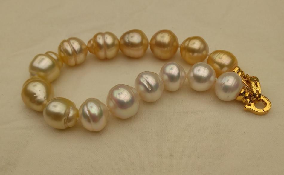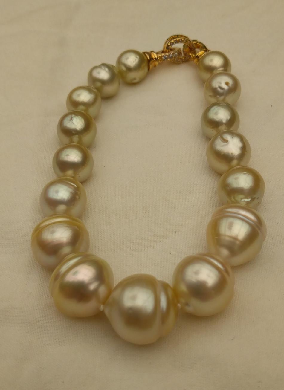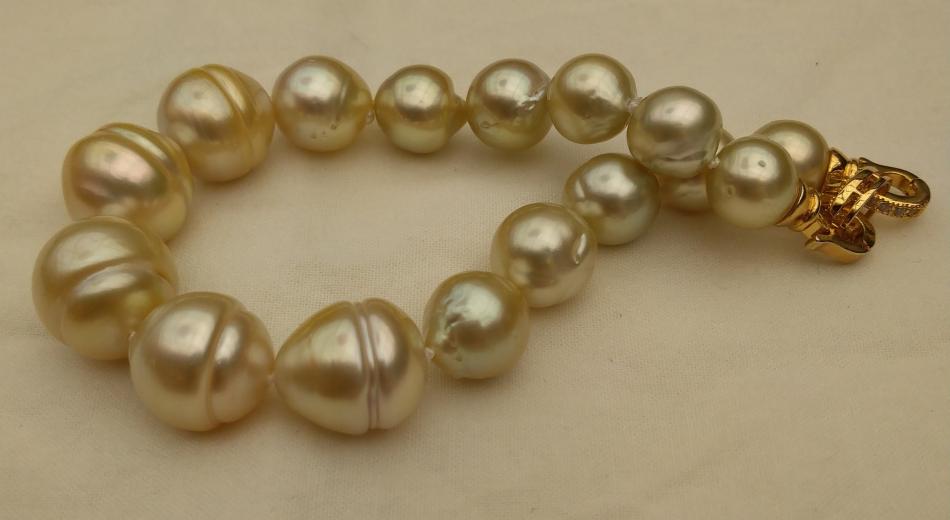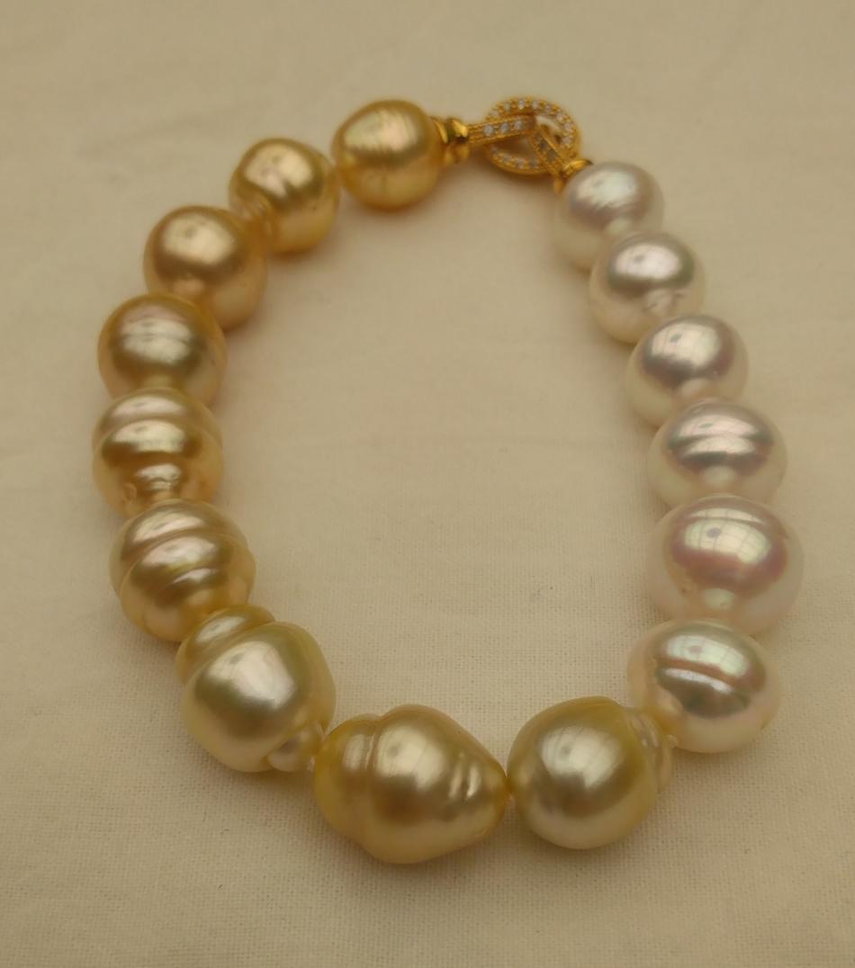 I finally have some bracelets to share. It appears that I only like pearl bracelets on me if they are somewhat chunky, that's funny because usually I prefer smaller (8-11 mm pearls) for necklaces. Well I have some exceptions, I love that new big circled golden south sea strand I just bought from Wendy, I have worn that a lot. Anyway, I have been tweeking these five bracelets, adding or changing out pearls for a while and I think that they are perfect, for me, now. First an ombre golden to white circled south sea bracelet to go with my new ombre golden to white circled south sea strand that I recently made. I love this bracelet and I can use it to make the strand a rope if I want to.