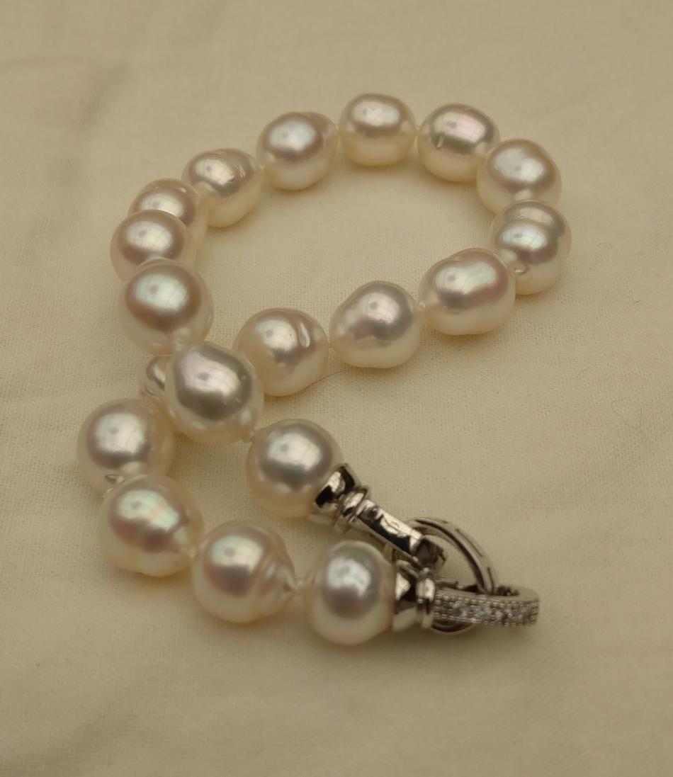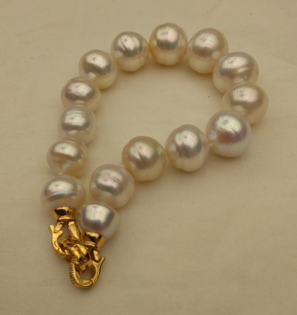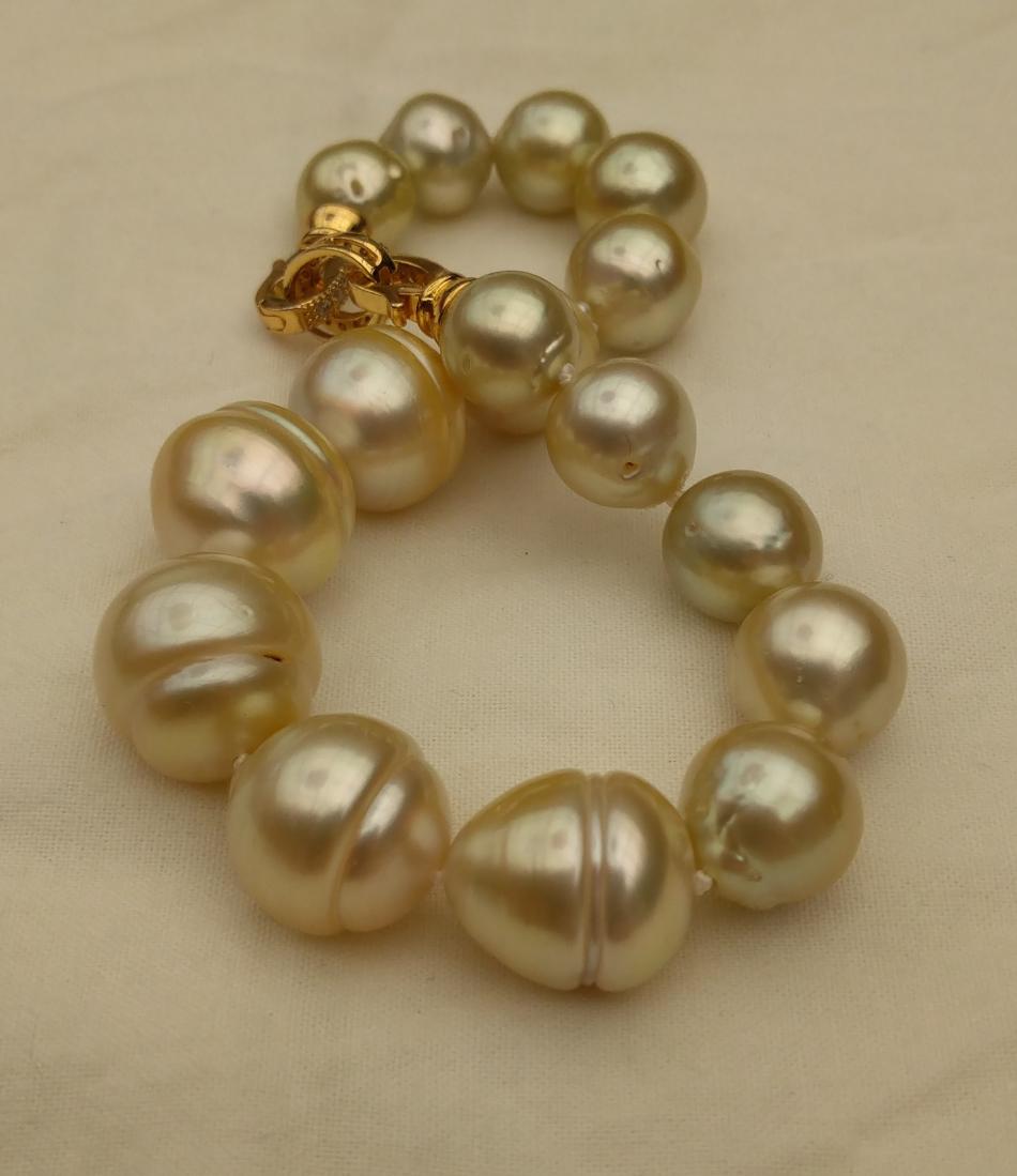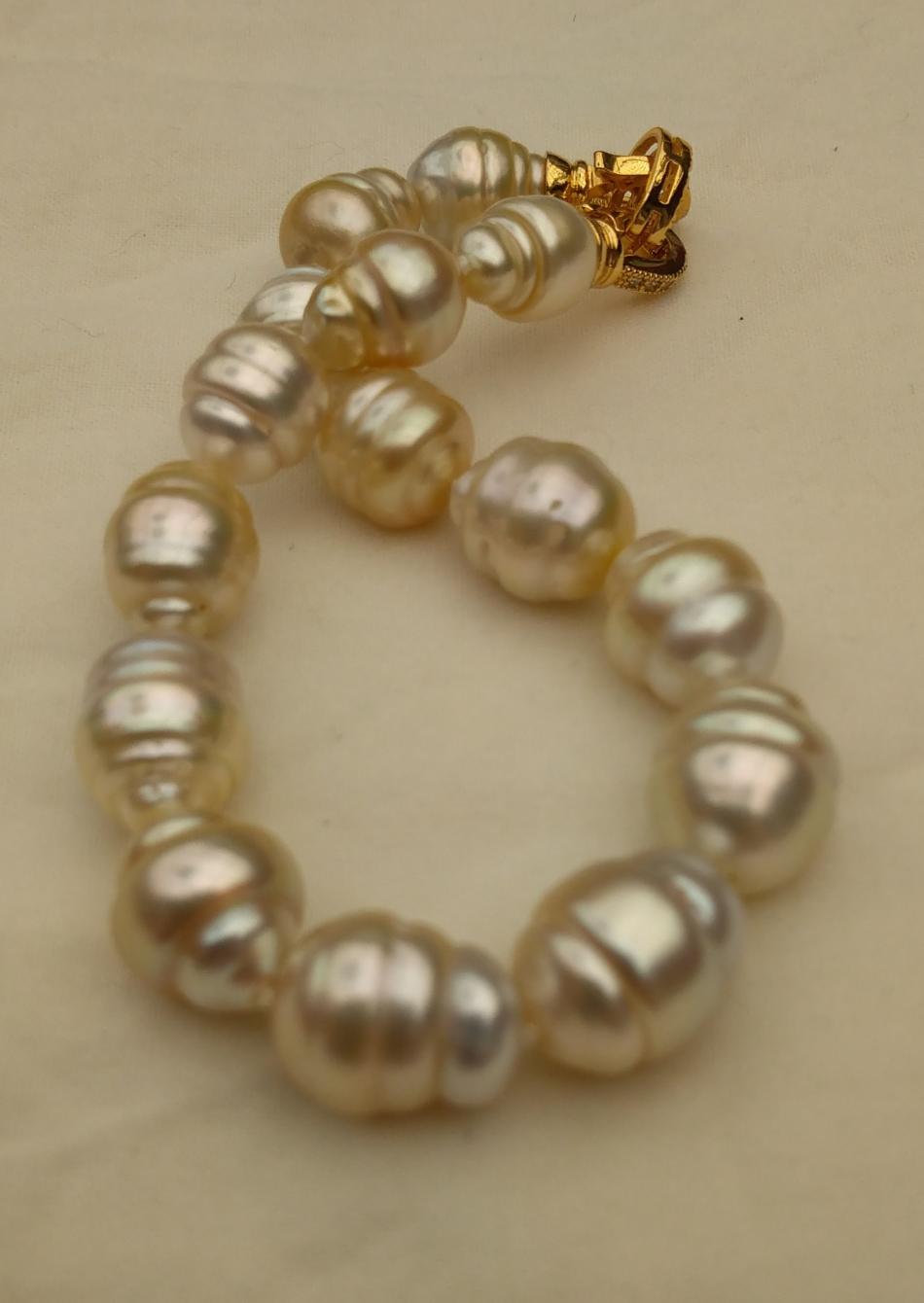 I finally have some bracelets to share. It appears that I only like pearl bracelets on me if they are somewhat chunky, that's funny because usually I prefer smaller (8-11 mm pearls) for necklaces. Well I have some exceptions, I love that new big circled golden south sea strand I just bought from Wendy, I have worn that a lot. Anyway, I have been tweeking these five bracelets, adding or changing out pearls for a while and I think that they are perfect, for me, now. First an ombre golden to white circled south sea bracelet to go with my new ombre golden to white circled south sea strand that I recently made. I love this bracelet and I can use it to make the strand a rope if I want to.