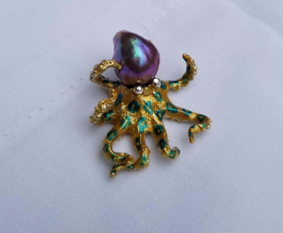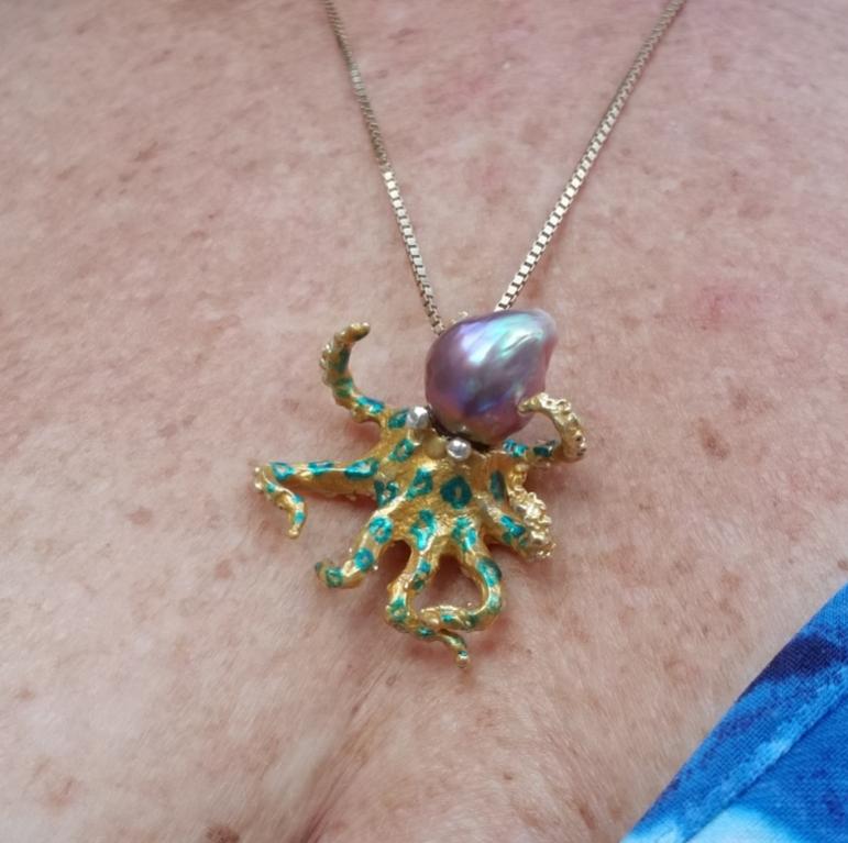 Oh, I do love that blue- ringed octo! And, yes, the flashes of teal in the pearl are perfect with the teal/ blue rings!