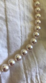 My graduated to 5.1 to 8.8mm strand with silver clasp appraised A+ on 1/22/2005 Cream with Silver for $2650 over a $1000 more than I paid but I did pay alot for a almost 50 year old strand. Luckily it turned out to be a really nice strand. Gosh that was a huge sum of money for me.
