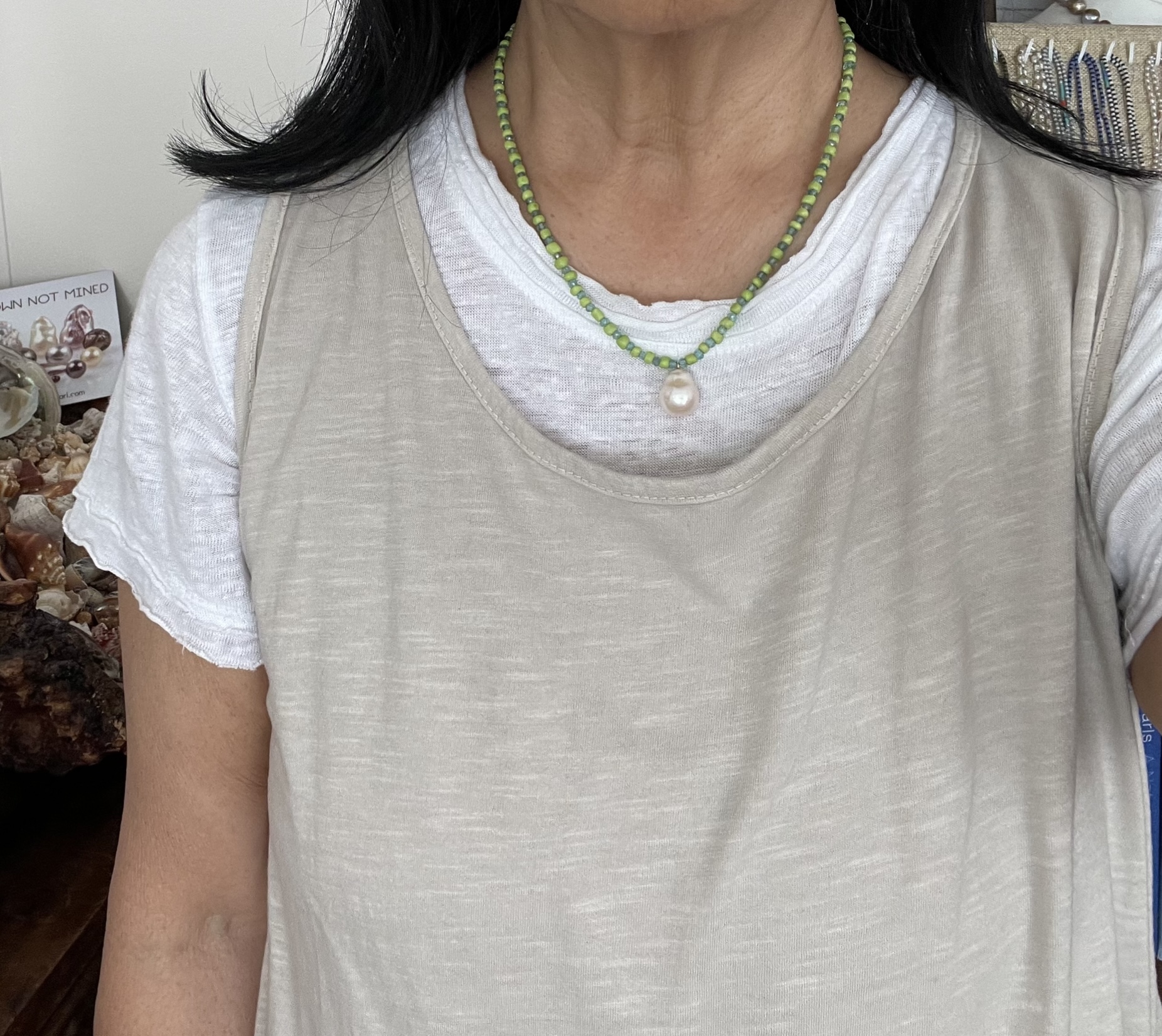 Gorgeous T's Pomelo!Inspired by @jeg ‘s tiny Ts, I was incredibly fortunate to stumble upon some Alexander Collins tiny drop peacock Ts from the lovely @pearlescence (who very kindly restrung them for me to 40cm as I like my necklaces shorter).