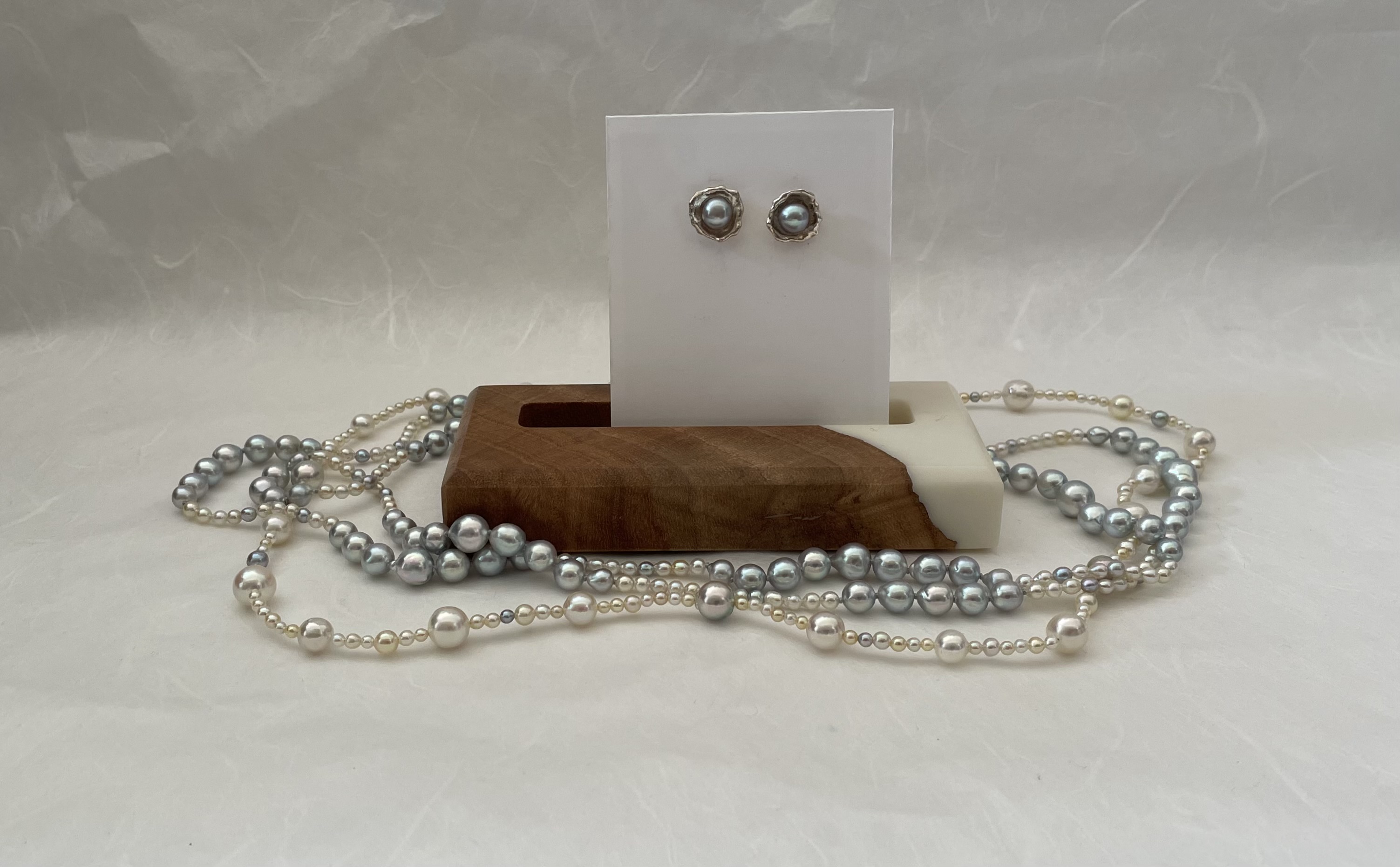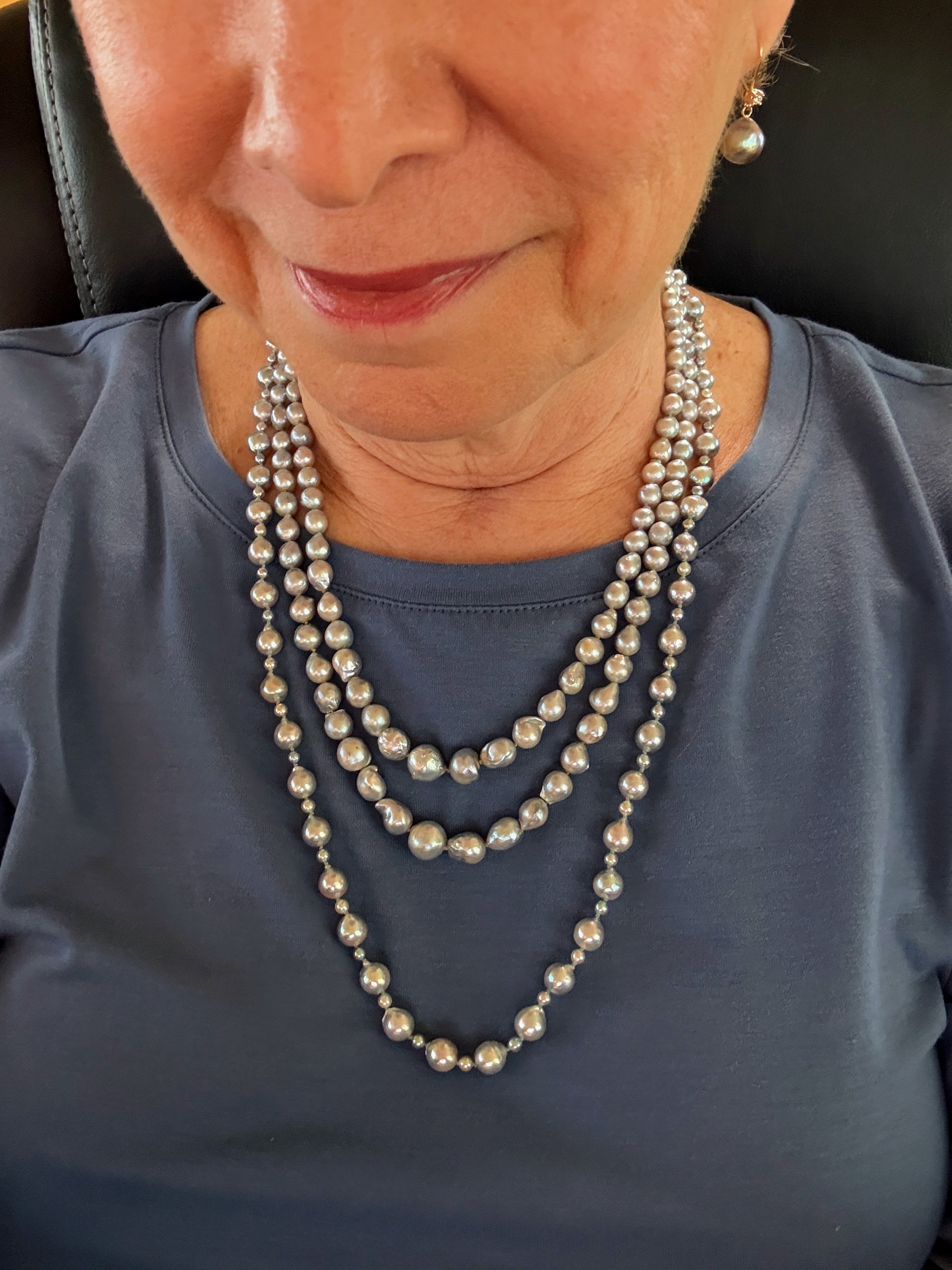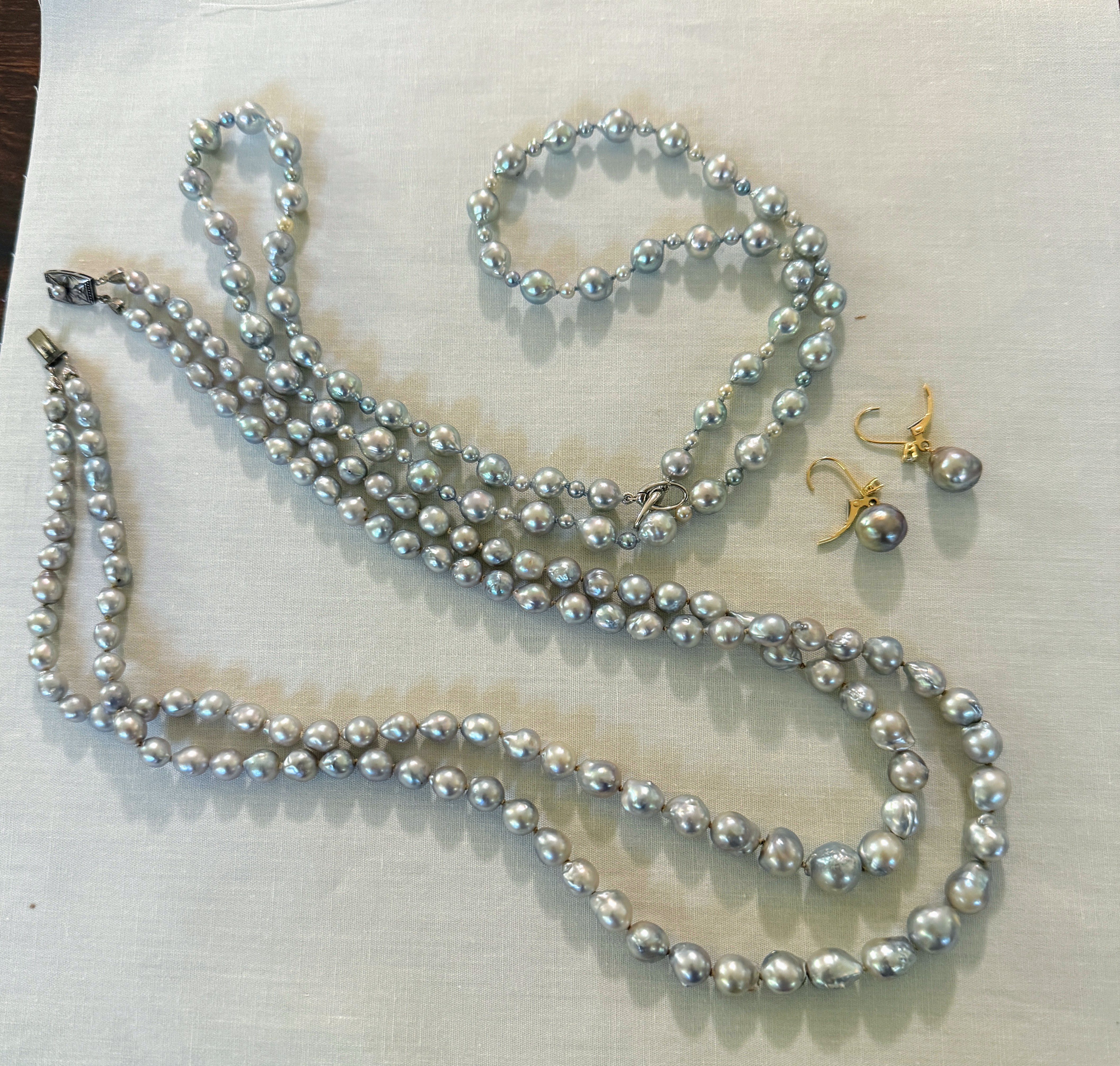 Baggins Akoya wave rope, a multi-color Akoya necklace I put together with pearls from Druzy, and earrings from Hawaii.