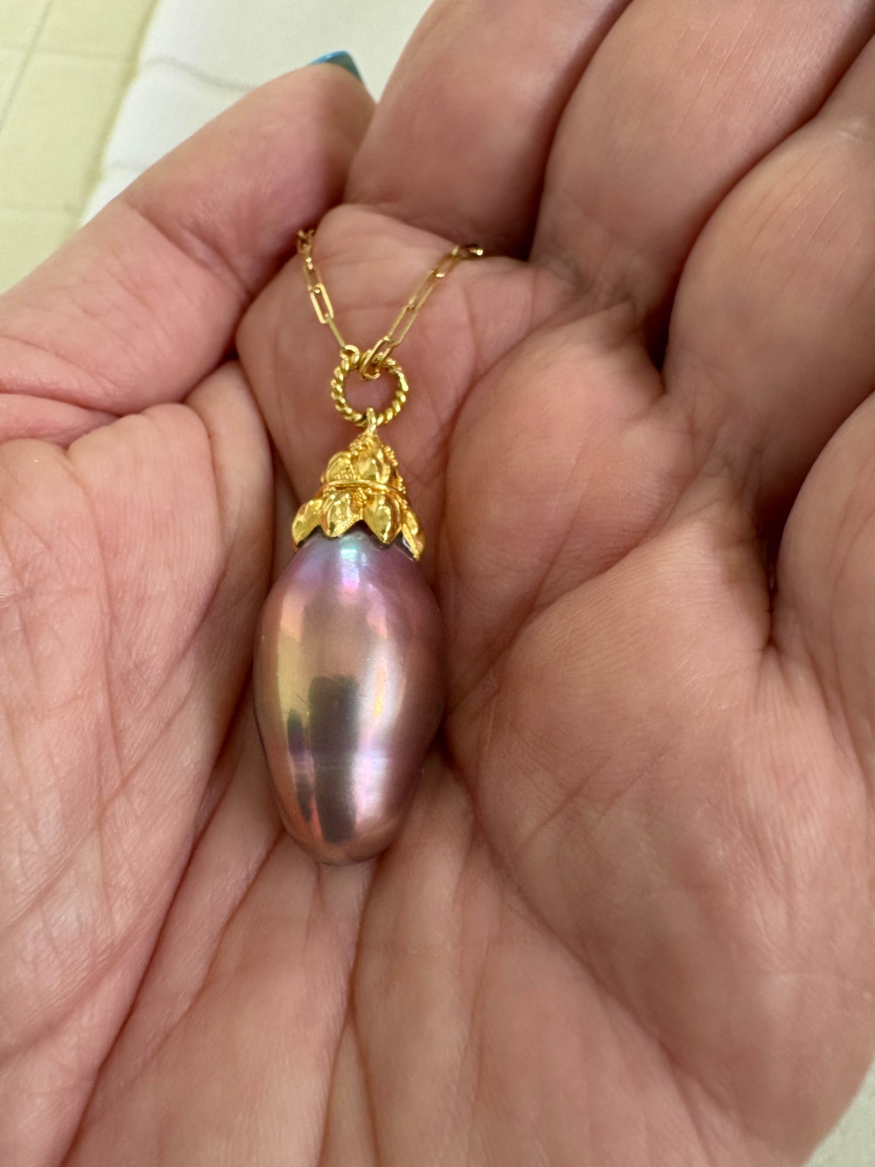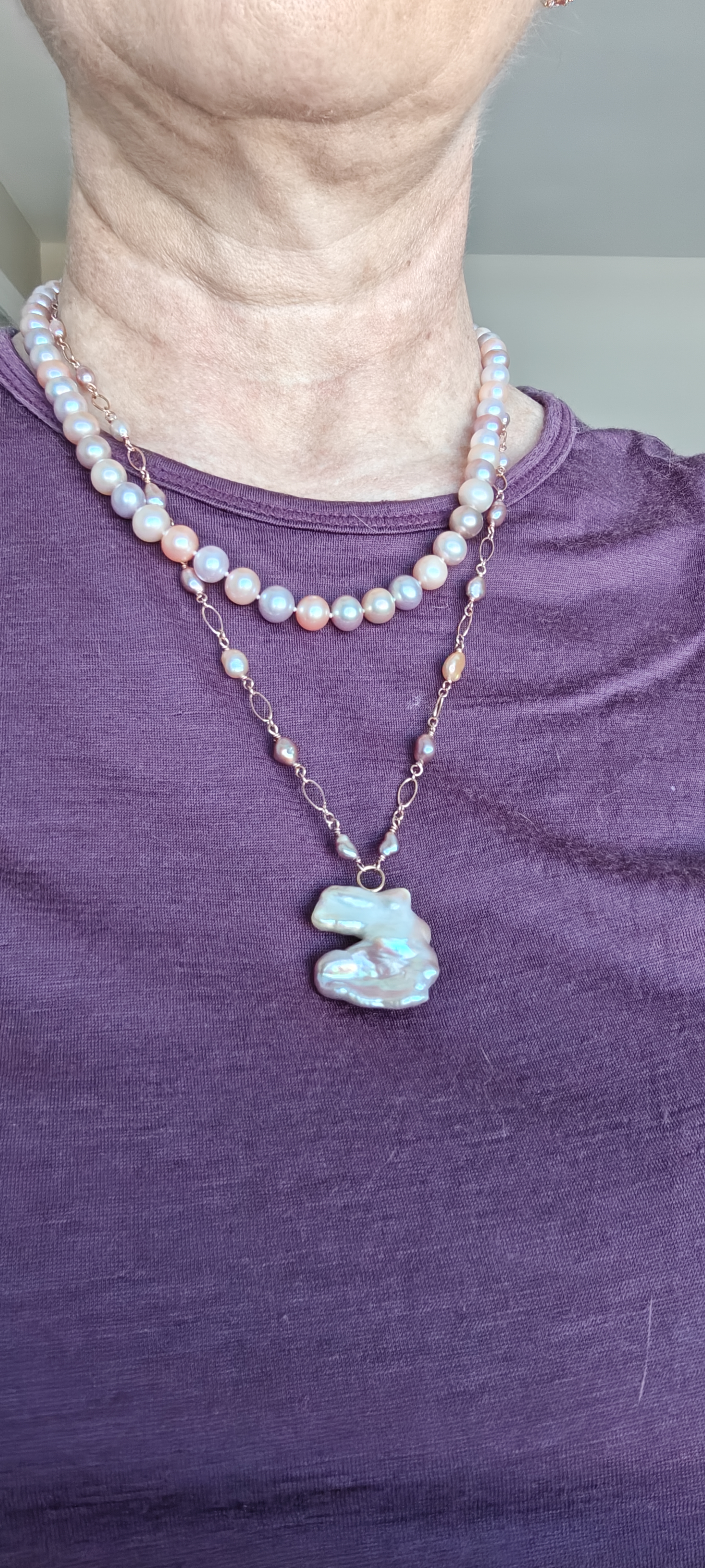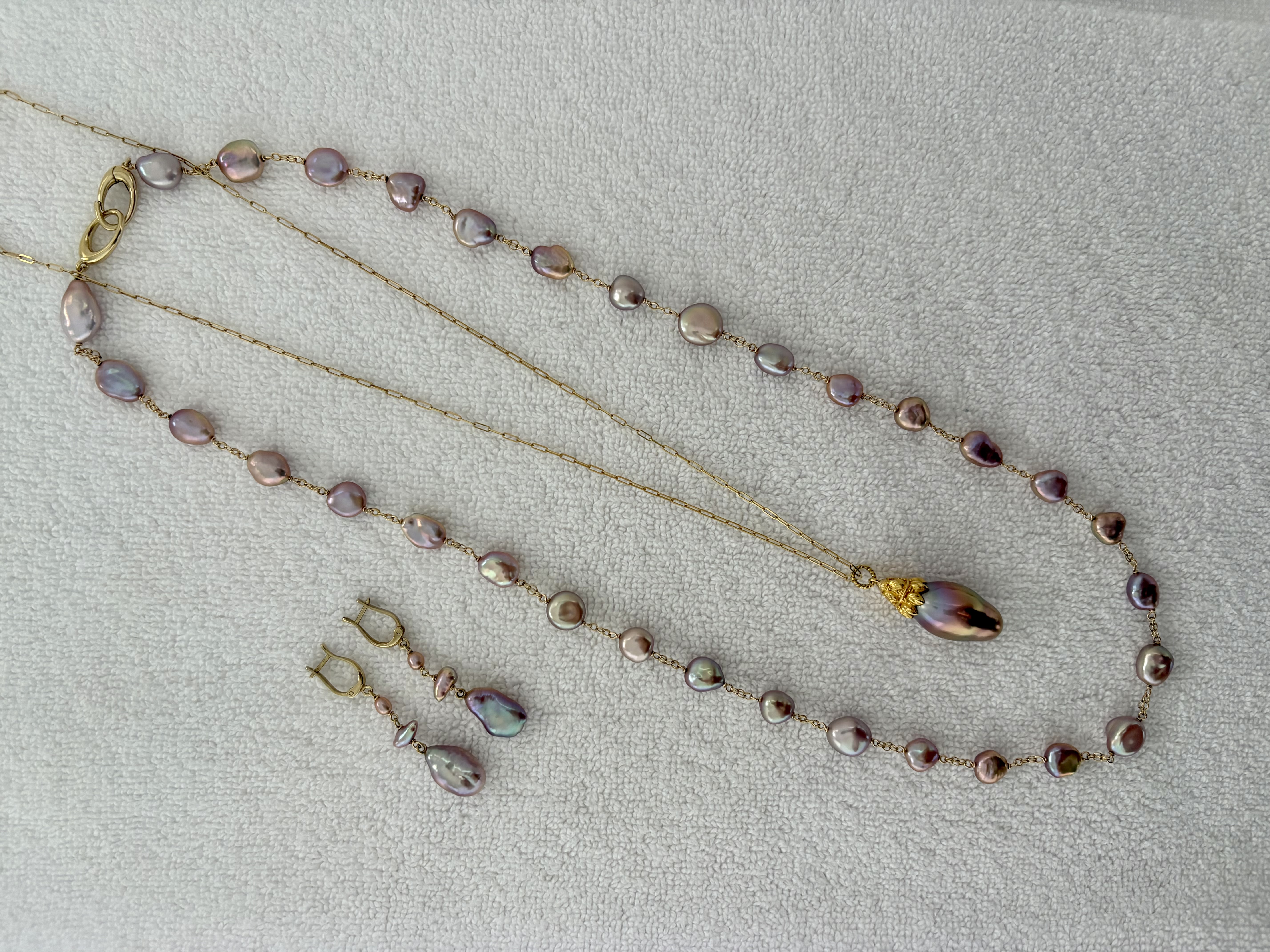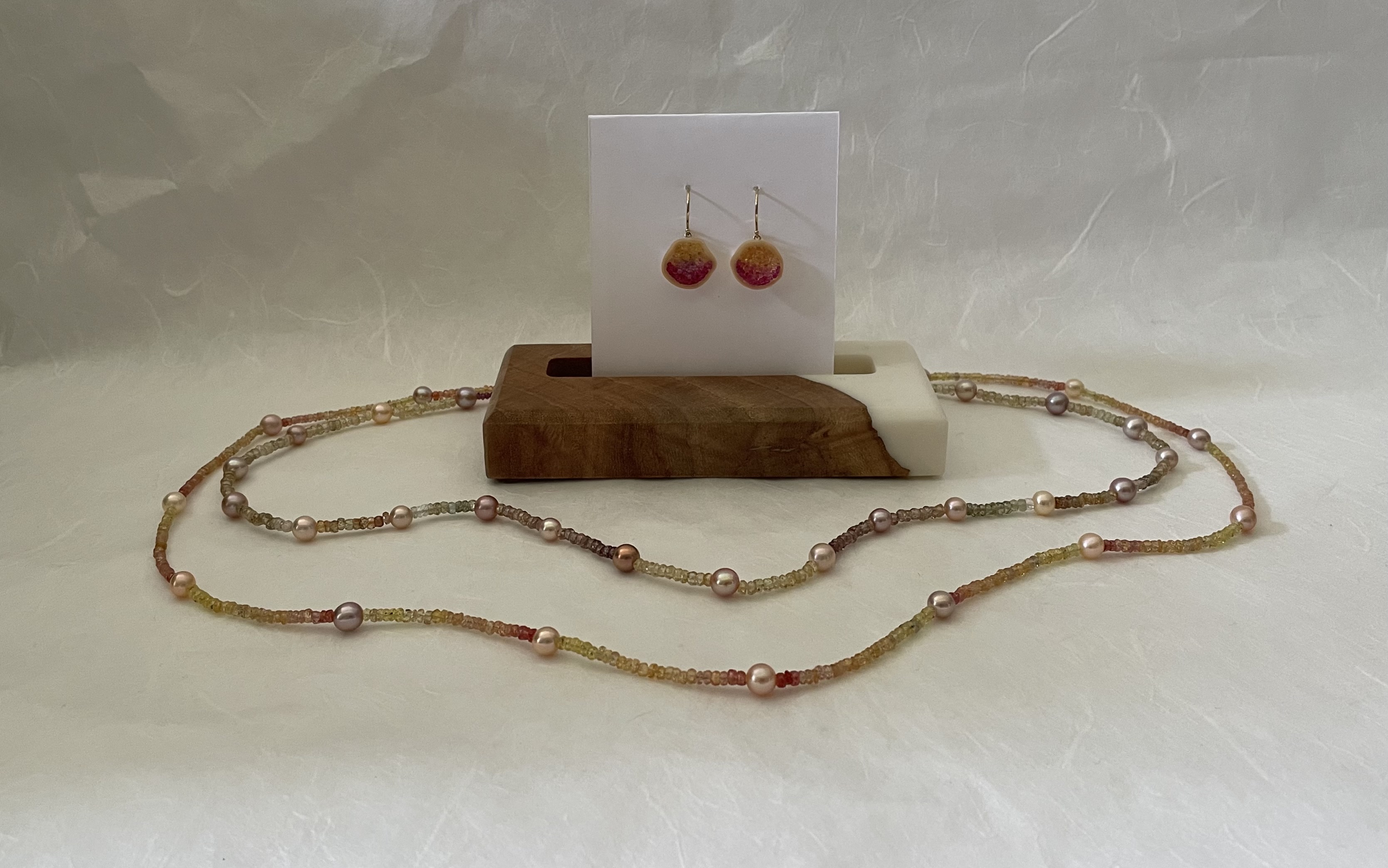 Baggins Akoya wave rope, a multi-color Akoya necklace I put together with pearls from Druzy, and earrings from Hawaii.