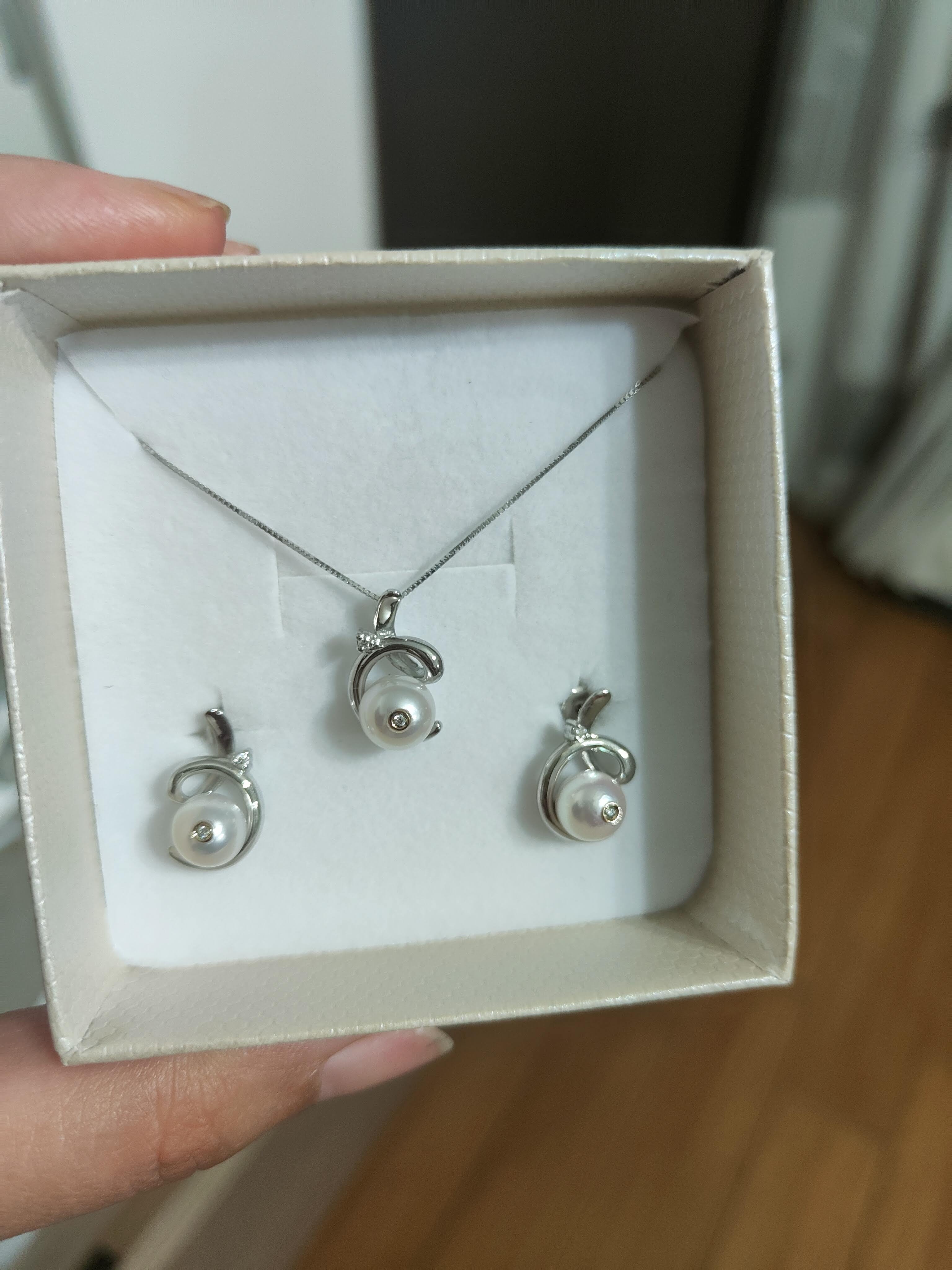 So I used to frequent a forum for another type of item that had a neat thread called "Your **** in Action!" where people could post pictures of their item "working it" in the real world, I always used to enjoy browsing that thread! I thought it might be fun to start one here for those that wanted to post some pictures of "pearls in action" making us look beauteous IRL! Soooo, I'll start, here's some pictures of my pondslime strand and I in the restroom at work today (washing hands, not using the facilities!), please excuse the labcoat. I was mesmerized by the colors and lustre under the florescent lights of the bathroom. I'm not normally one for multicolored strands, but I just love this one, and I feel like the colors go with everything!