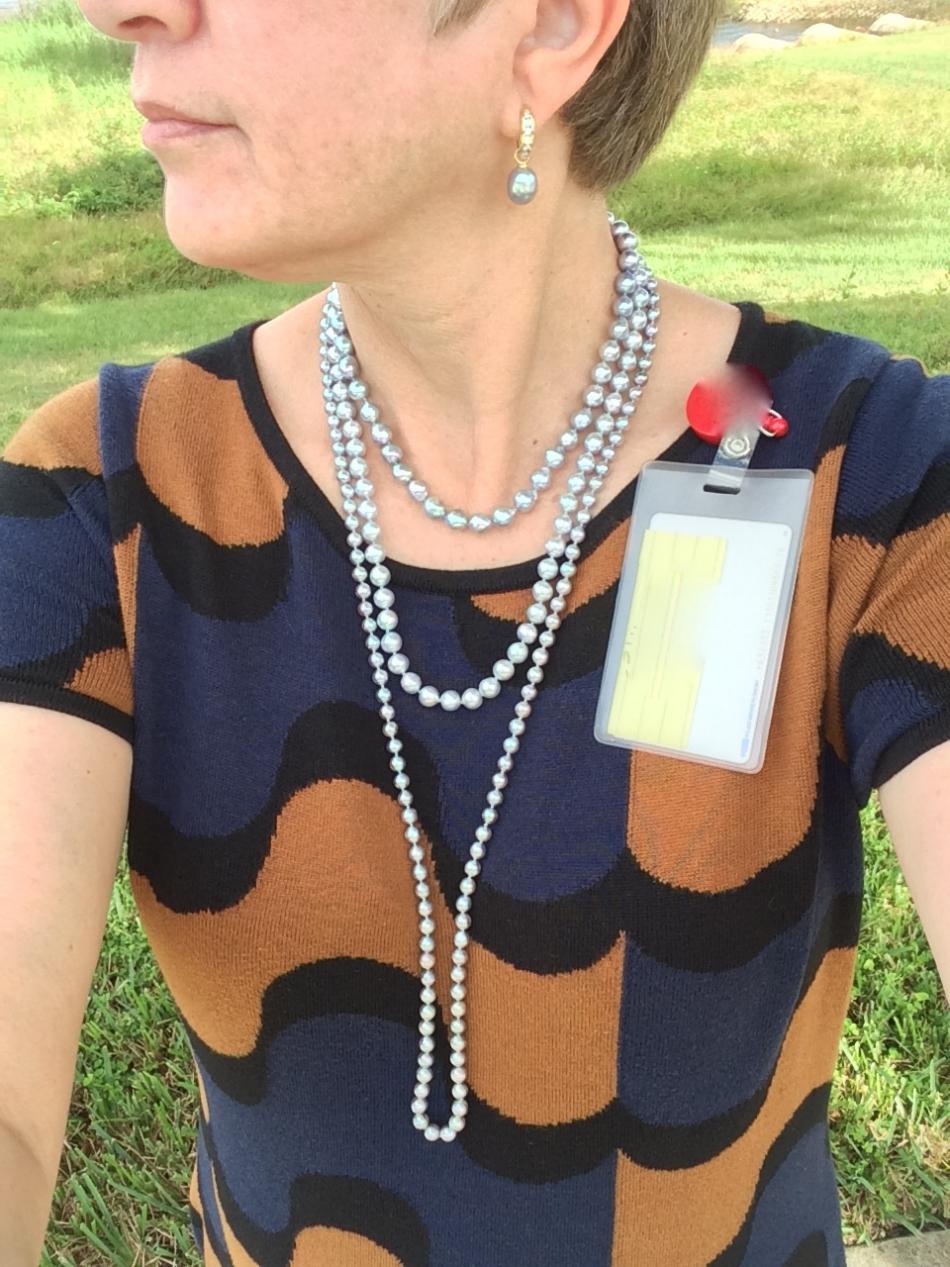 Right, well, I'm a little behind. The weather has been beautiful, cool (i.e. 80F) and clear (i.e. AND no humidity or rain), so PEARL WEARING SEASON!