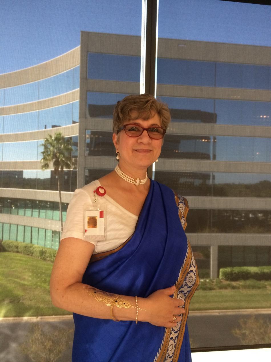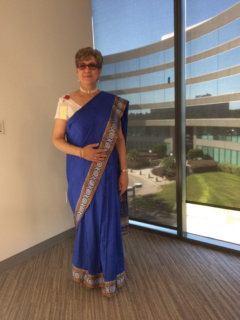 I wore my Aunt Love's silk sari again, but chose different jewels this time.