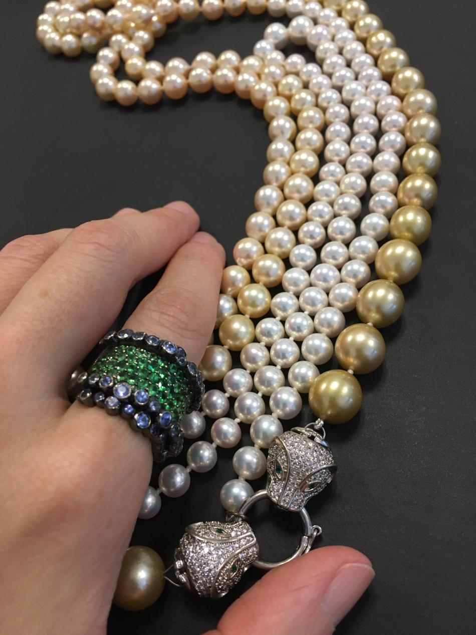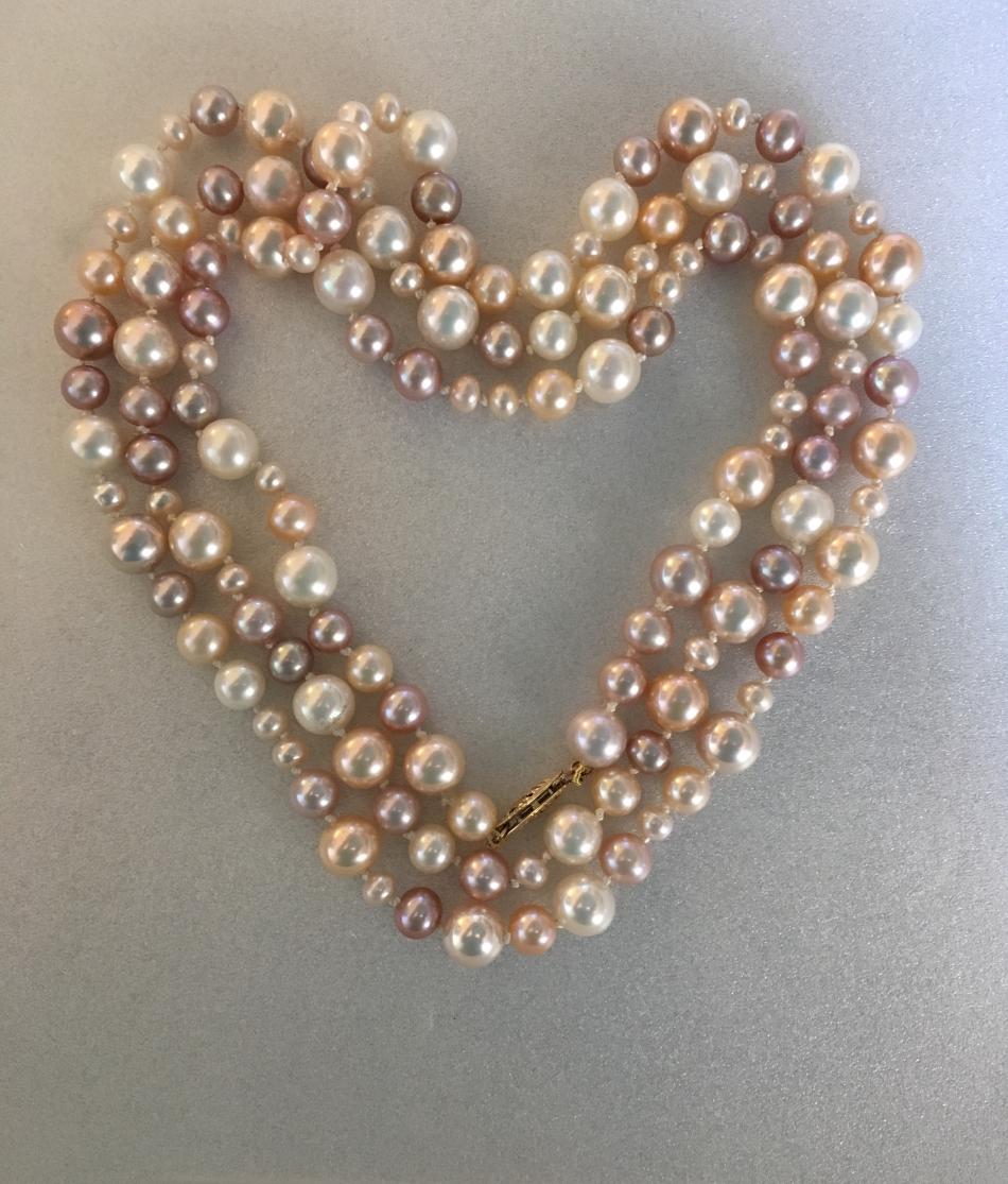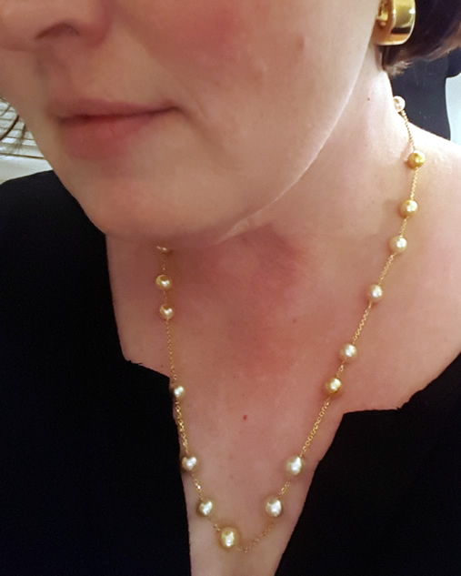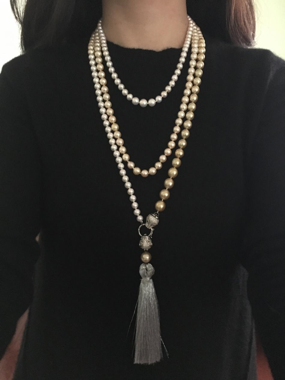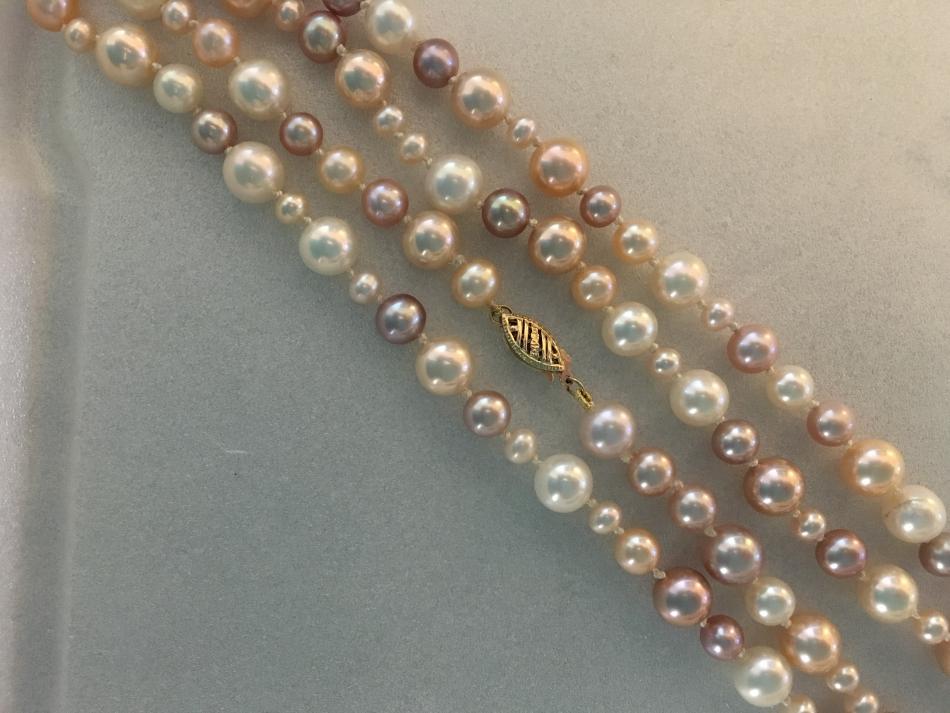 I am really struggling with lighting and definition. I went all over the house trying to find lighting that would show the colors on these pearls with not much success. They look great off of me though!!