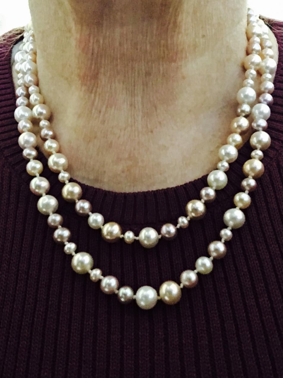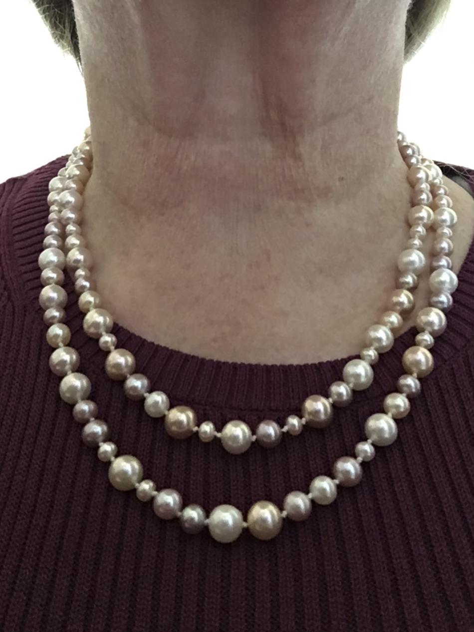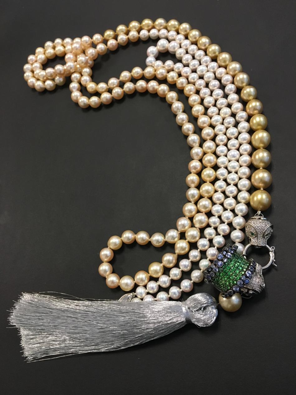 I am really struggling with lighting and definition. I went all over the house trying to find lighting that would show the colors on these pearls with not much success. They look great off of me though!!