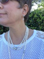 BWeaves, I love the layers and layers of white pearls. The earrings look great upside down!