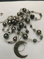 Today's look - I kind of dig how the oxidation on the crescent picks up the greens and blues in the Ts. I was going to remove the oxidation and add gold accents but now I'm undecided.