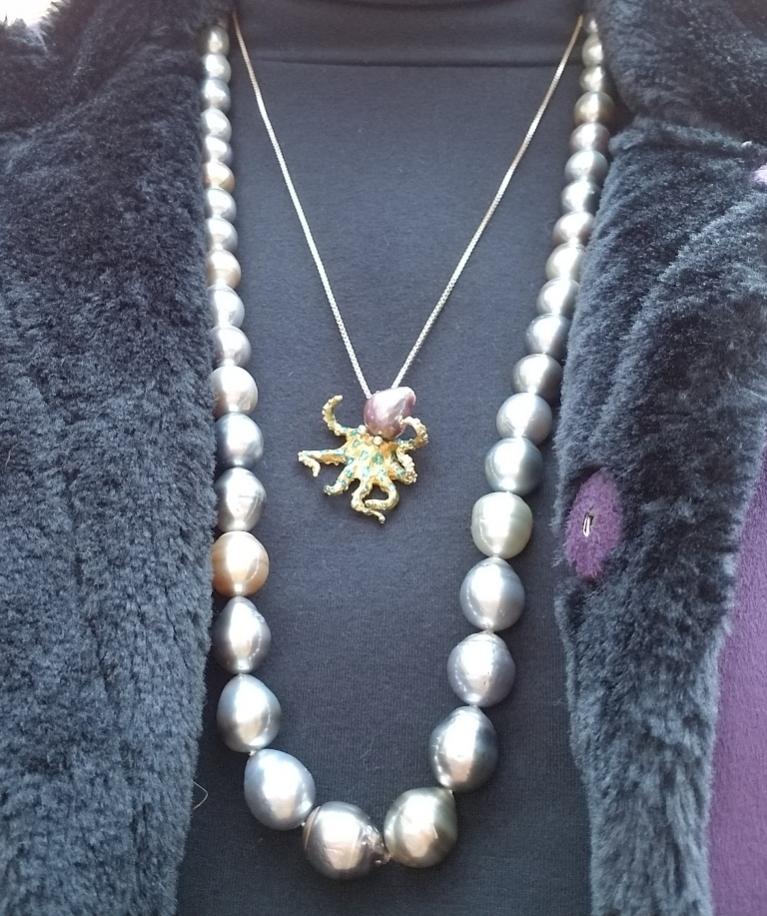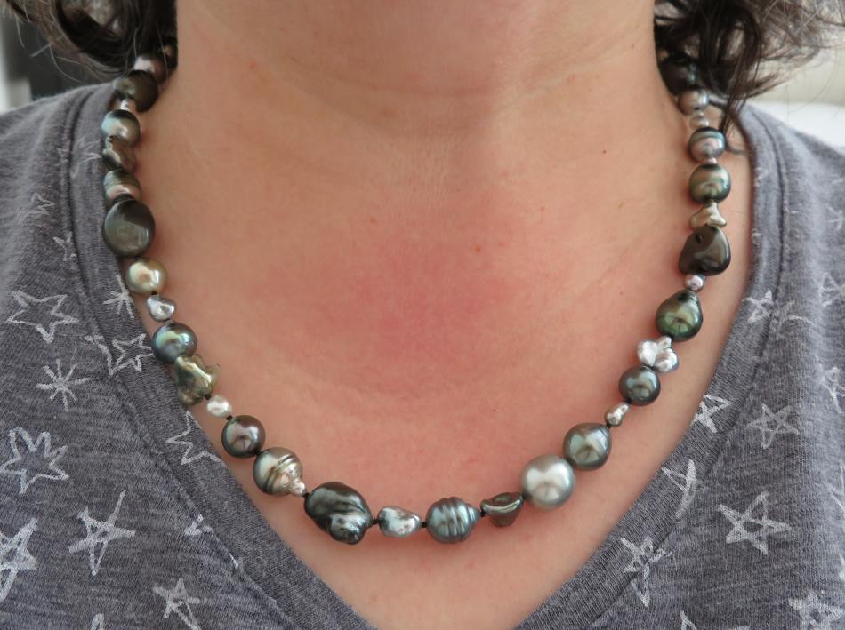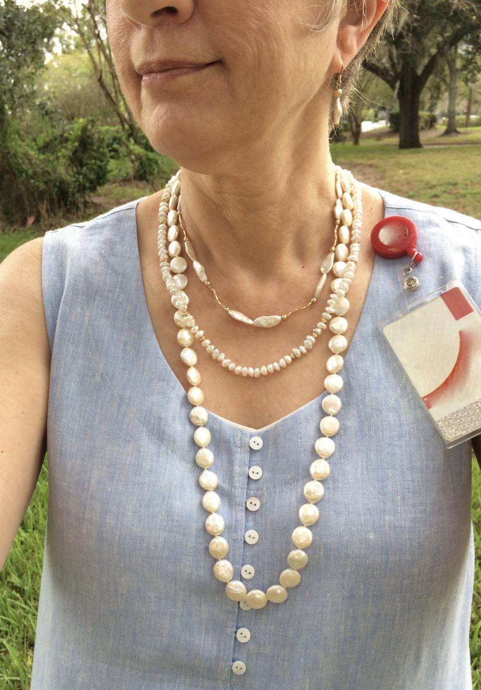 Katbran: Yes, hahah. It's down to 80F this week. Definitely cooling off. It does make it easier to layer up the pearls, since they are warm to wear. I'm always amazed at how cold my jade bracelet is to wear. If I ever find jade beads in my budget, I bet they'll be very cool on my neck.