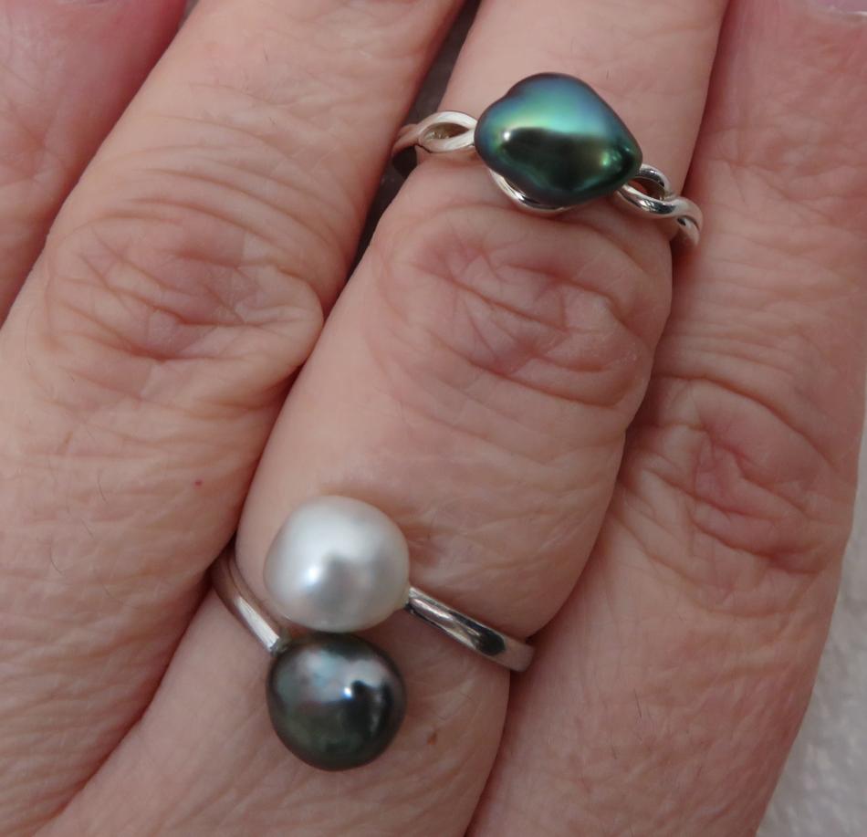Annie: Those T's are gorgeous. That top ring has amazing color and luster. And the necklace has a beautiful balance of shapes and colors.