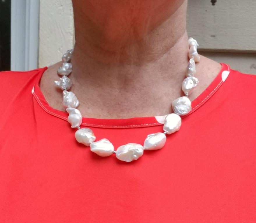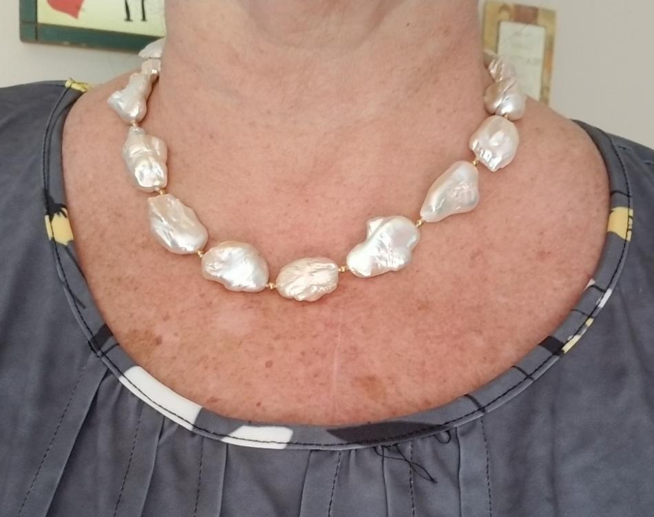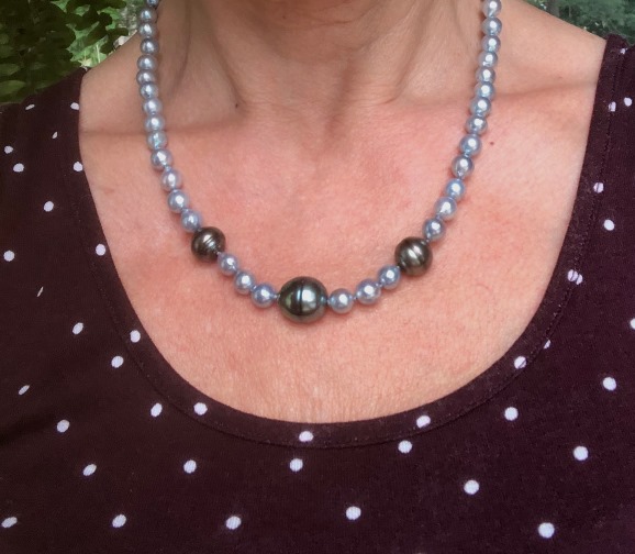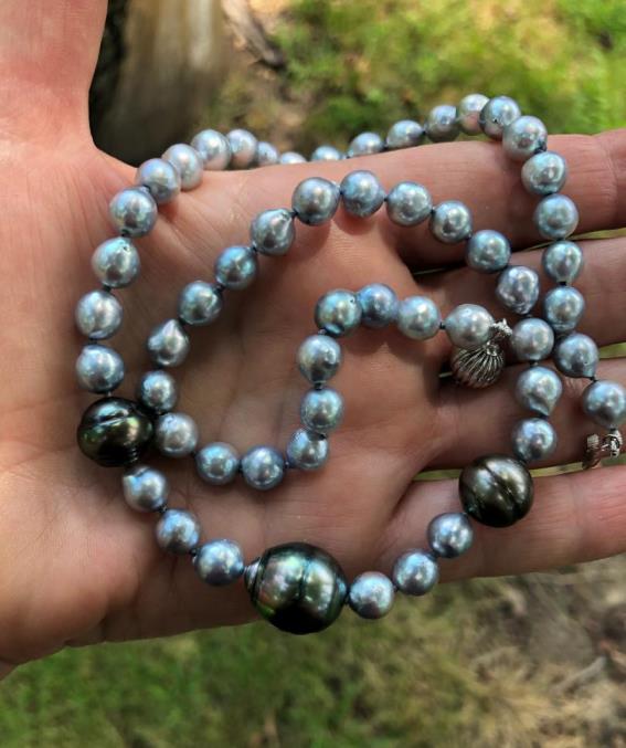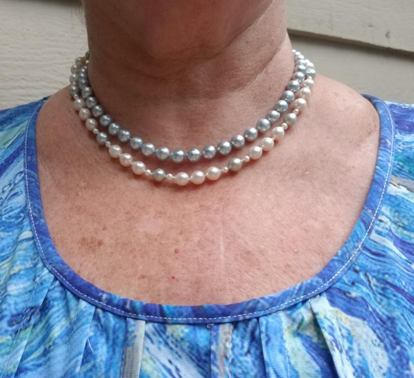 Here are a few of the pearls I've worn but couldn't post due to the attack on the site. I wore my white soufflé from Sakura on Etsy, my PP Blue Akoya necklace with one of the white/blue Akoya strands I had made, & my warm iridescent baroques, also from Sakura.