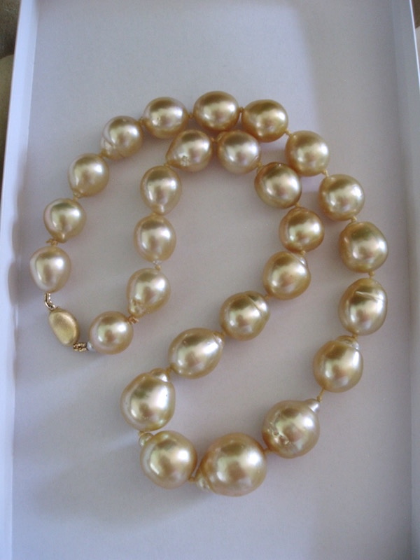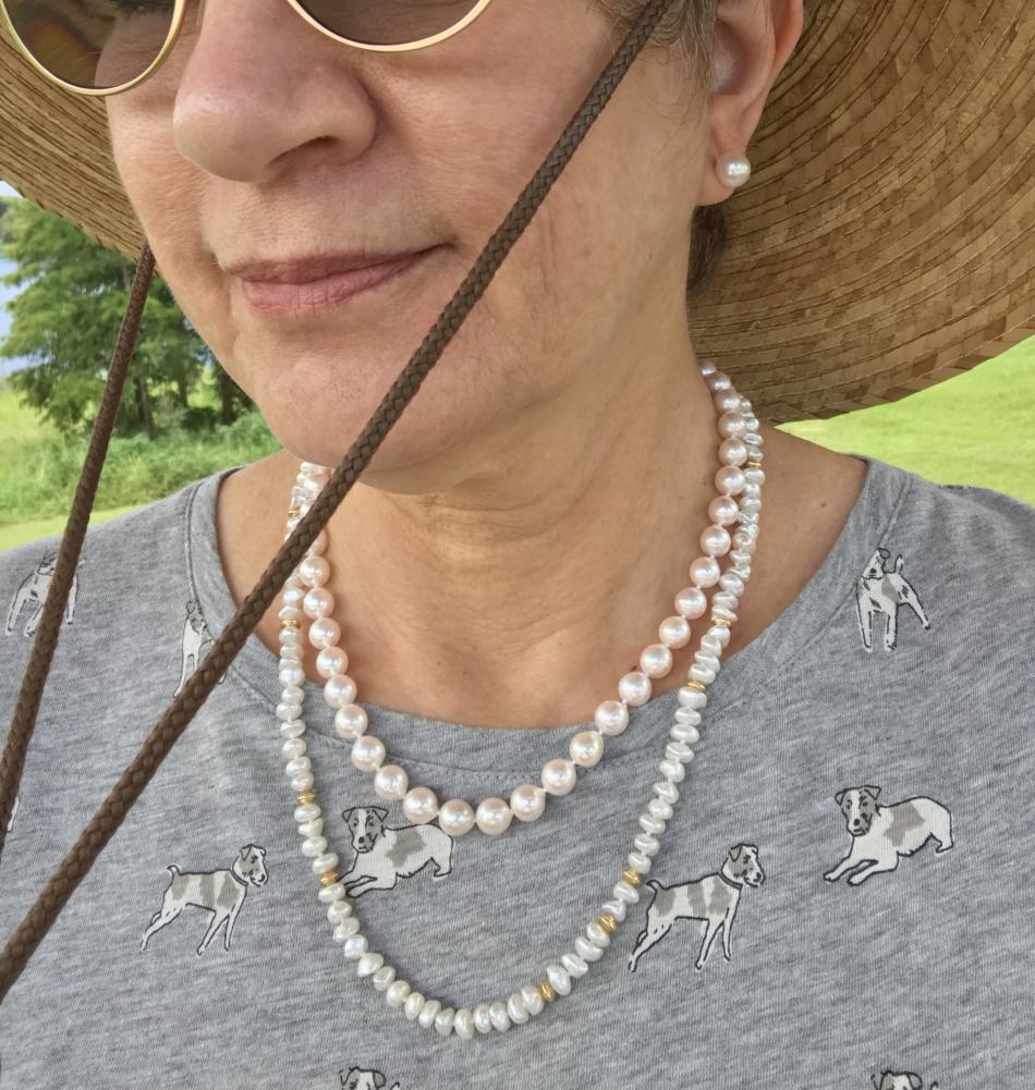 It's a nice sunny day and I got a few shots of my daughter's new GSS. In the outdoors shot she has her back to the sun (the shadows were too harsh facing the sun) and the other shows the pearls in the white box lid, indoors.