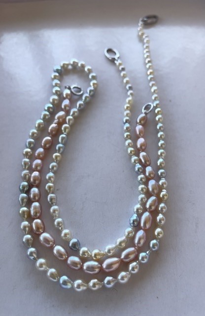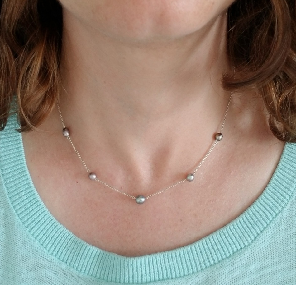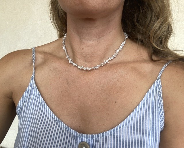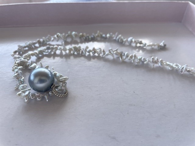 Last piece from the second pearly package - spiky akoya keshis from an Etsy vendor laviniasjewelrygems. My angel wing pearl is also from her and I am very happy with both of my purchases, This is a funky light summer neckace with pretty luster and also an altrnative chain for my big blue T. Happy happy happy