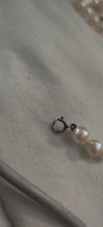 So back story is really simple, I bought a storage unit at a online auction and one of the items in the unit was this pearl necklace. I rubbed them along my teeth to test if they were real and to my surprise they were very gritty indicating that they are... So the clasp says .925 on one side and on the other side it says "GCC" or "GOC" it's rather difficult to tell. And then "ST" below the G..C marking.. heres pictures. Any help, expertise, knowledge is appreciated. I'd love to give them to my fiance but I just want to know more about them first.