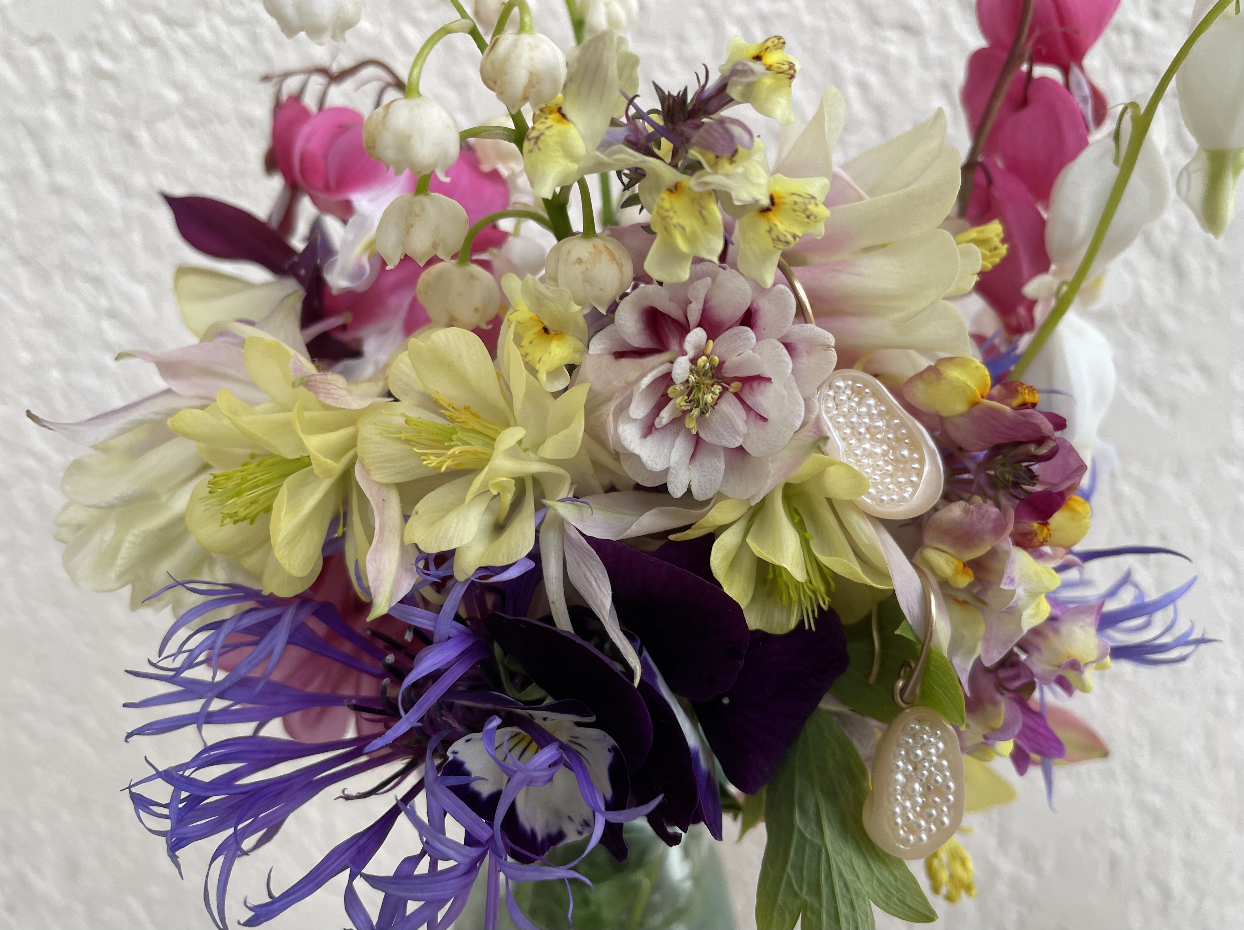 Kasumis, Keshi and Little H's alongside with flowers...what a great way to start Shavuot!