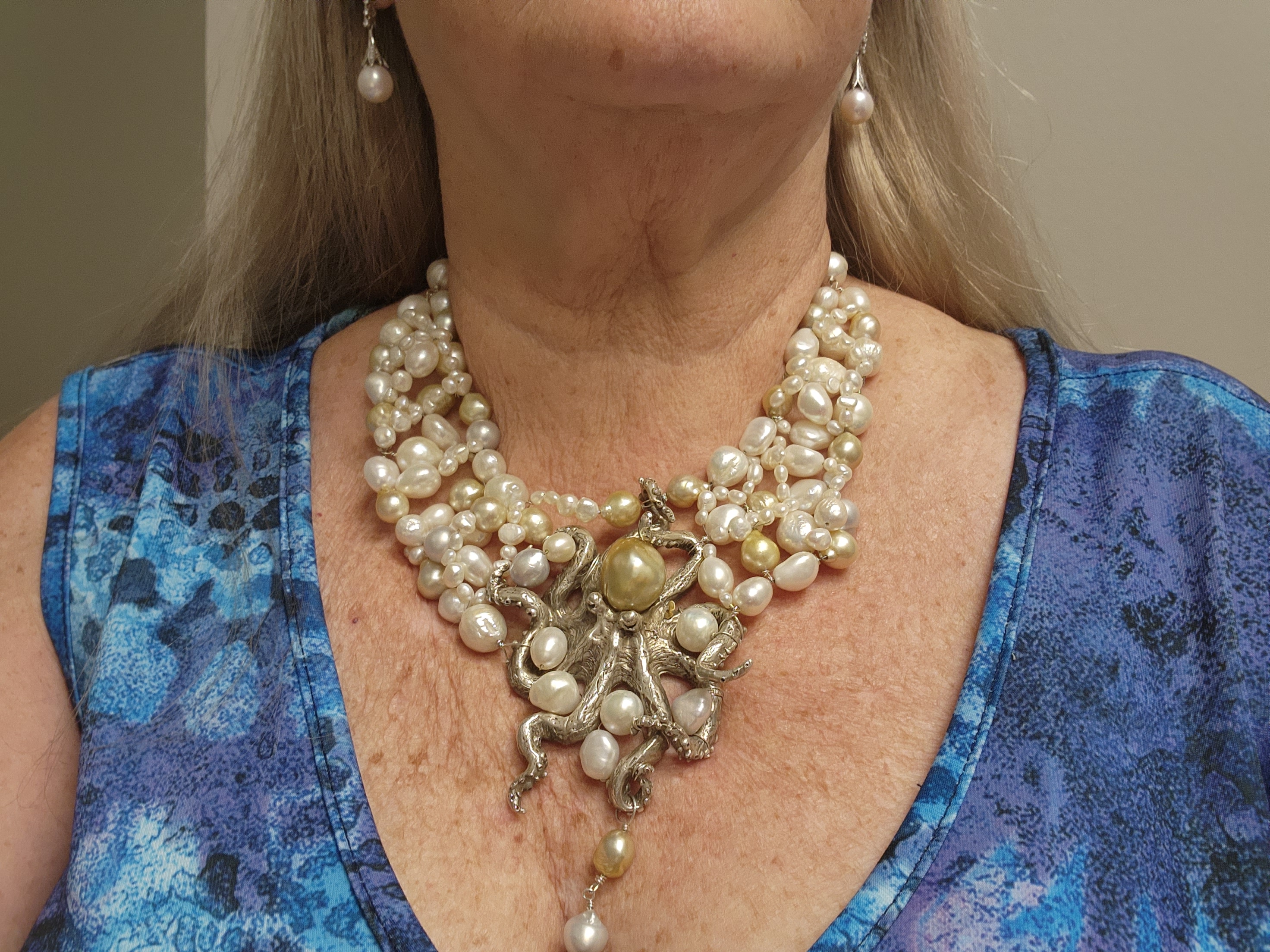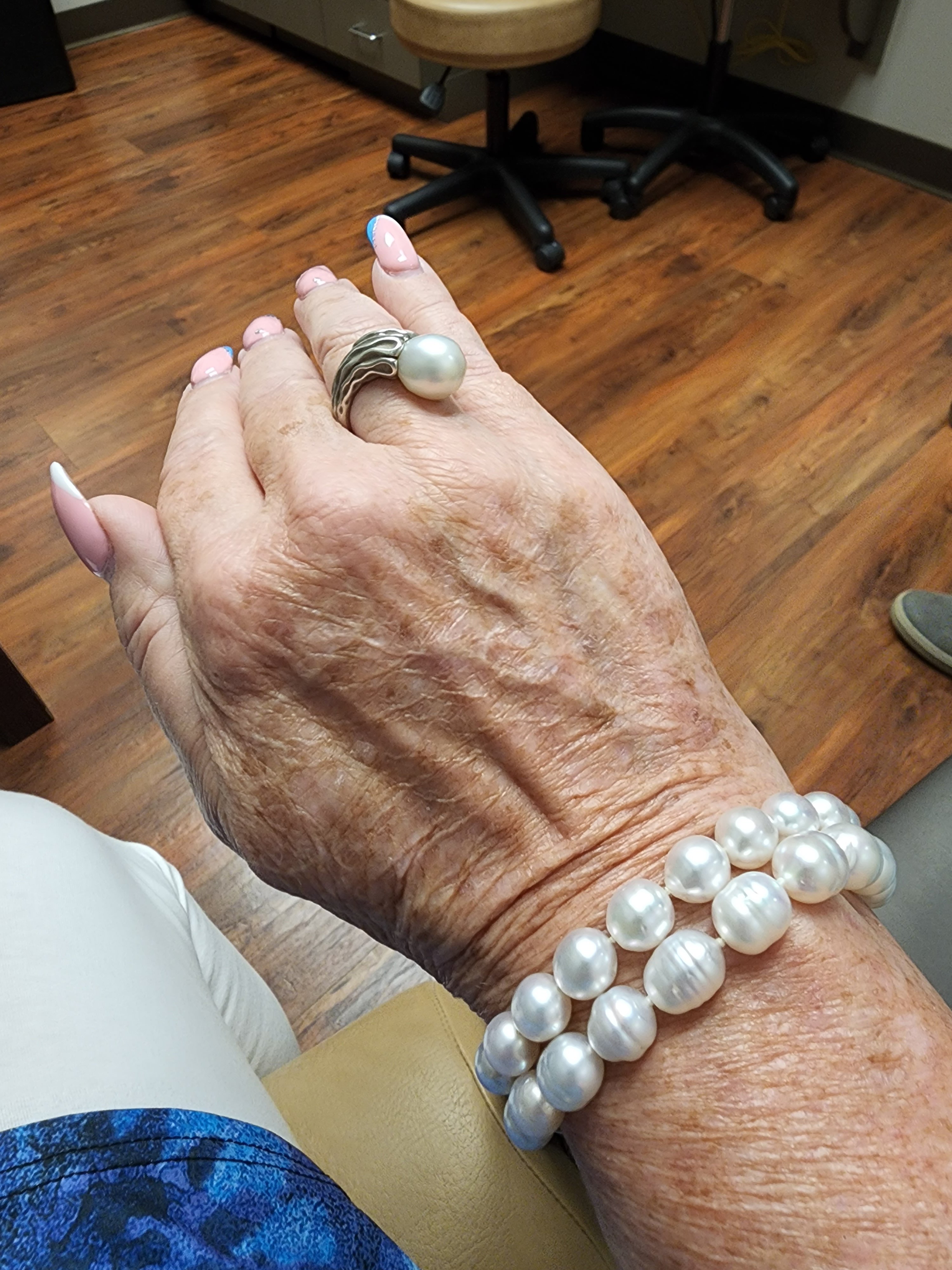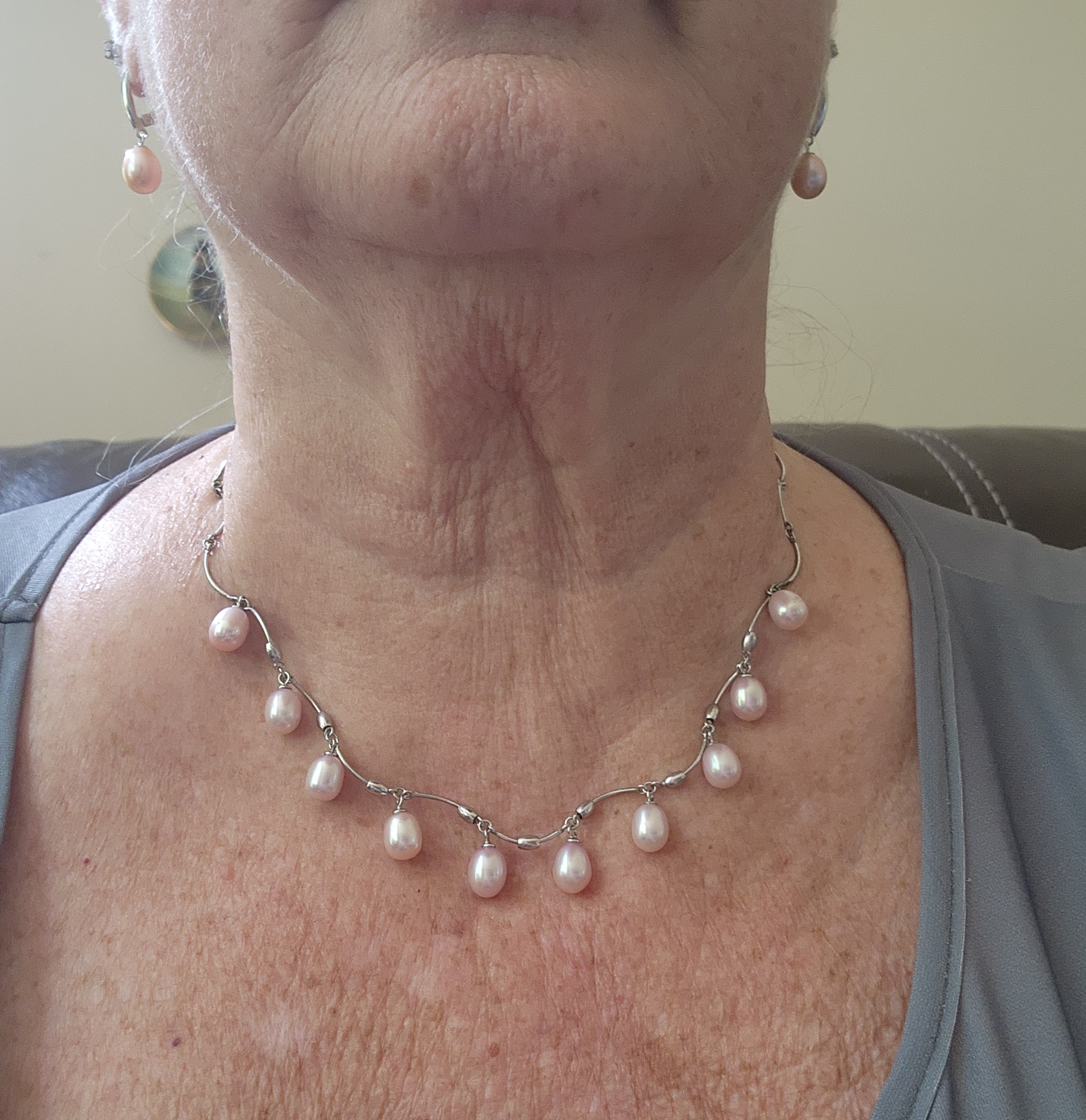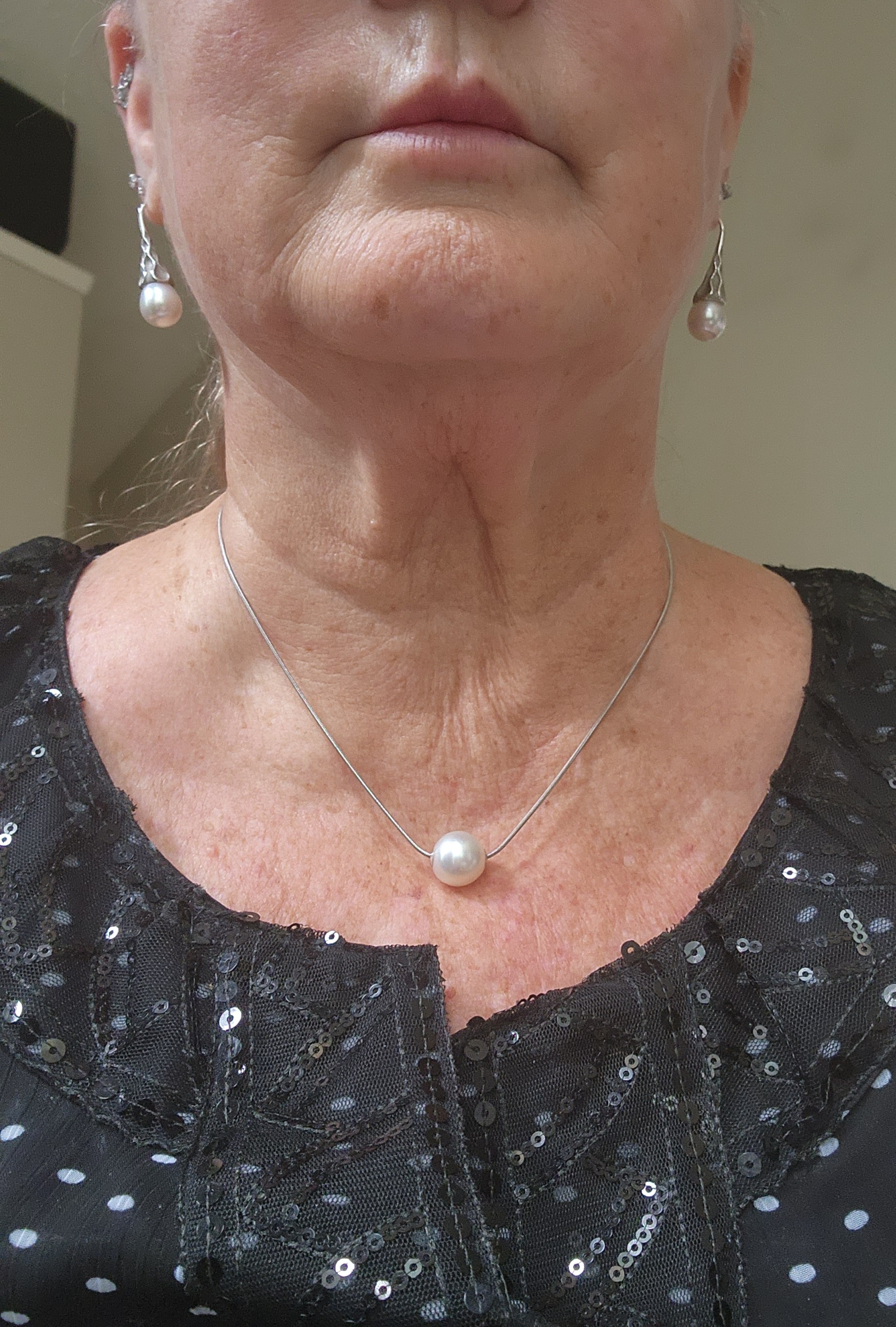 I liked the Mikimoto huggie earring so much that I bought it in both white gold and yellow gold. The white gold has very white pearls, while the yellow gold has pinked pearls. The pearls are about 6 mm. These are great travel earrings, because the back is very secure and comfortable to sleep on if I nod off while traveling. The earrings are also not likely to come flying off if I put on or take off my mask and the ear strap gets caught on the earring. The lever back is very robust.