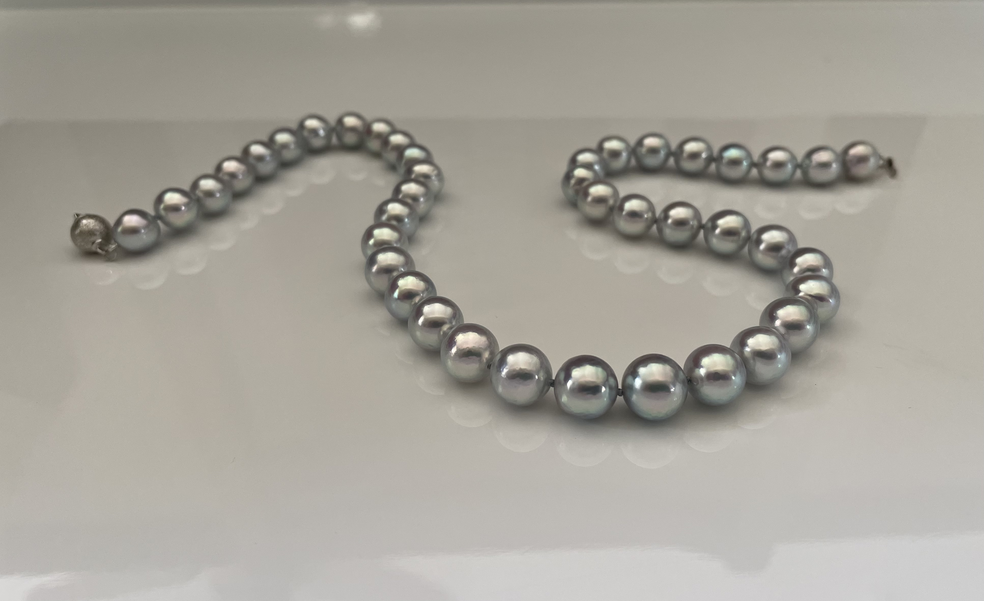Since I have been living in the studs from Takahashi, I decided to ask if maybe they had large baroque pairs in white Akoya. I received photos of some very nice pairs to look at, but then… as an unexpected surprise they added two pairs of natural white Akoya into the mix. I thought they were quite beautiful, with great luster and natural pink. I chose a pair of the natural whites since they are harder to come by besides looking so nice. They are around 10.3mm. I also asked about a strand I had seen on their IG page. It’s a strand of silvery blue baroque Akoya. Couldn’t resist. It was a little late for decent lighting, but I‘ll be taking more pics of these pieces. (the other pair of natural whites is going to another PG friend, so I’ll get to see them in person one of these days!)