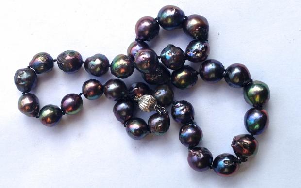 doubled strand of 4-5mm (really REALLY) blue (so probably dyed) akoyas (vintage from ebay) with my rainbowislandpearls tahitians: