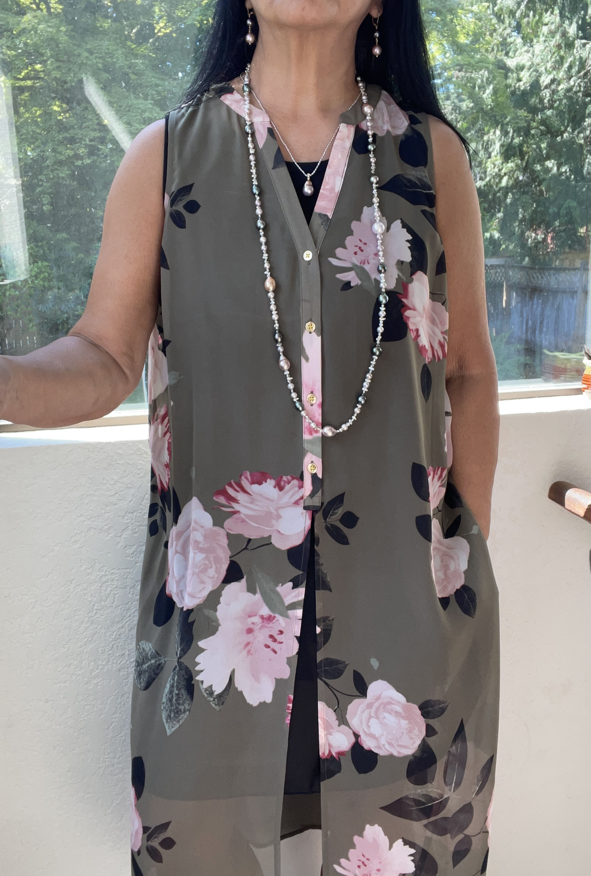 Wearing a strand of green Tahitians from PP with earrings from little h.
