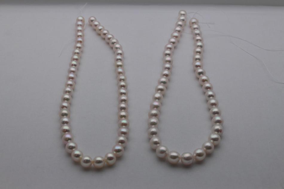 Katalin judging from you pic, the smaller strand does seem to have a slightly sharper luster, but I agree with Newberry. I think you might be happier with the larger strand - you know how pss takes hold of us all!