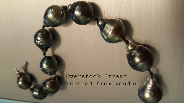 My first strand was from Overstock about a year ago. The knotting was...well, picture attached. The quality was a little less than I had hoped for. They got me through for a while. I restrung them on Beader's Secret "Storm" a couple of days ago and like them much better now (plus it was fun!). Still need to restring....I have a glaring mistake. Now, with a lighter thread I don't mind them as much. I plan on buying a half hank of nicer baroque Tahitians and re-do this at some point to wear doubled up with the newer PP strand.